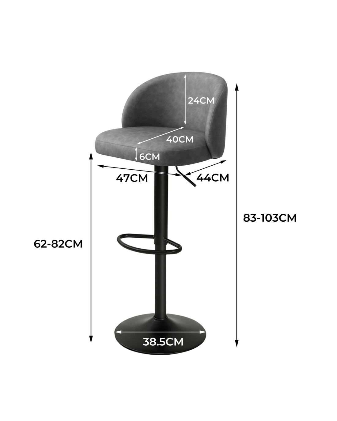 Seat height range: 62cm to 82cm