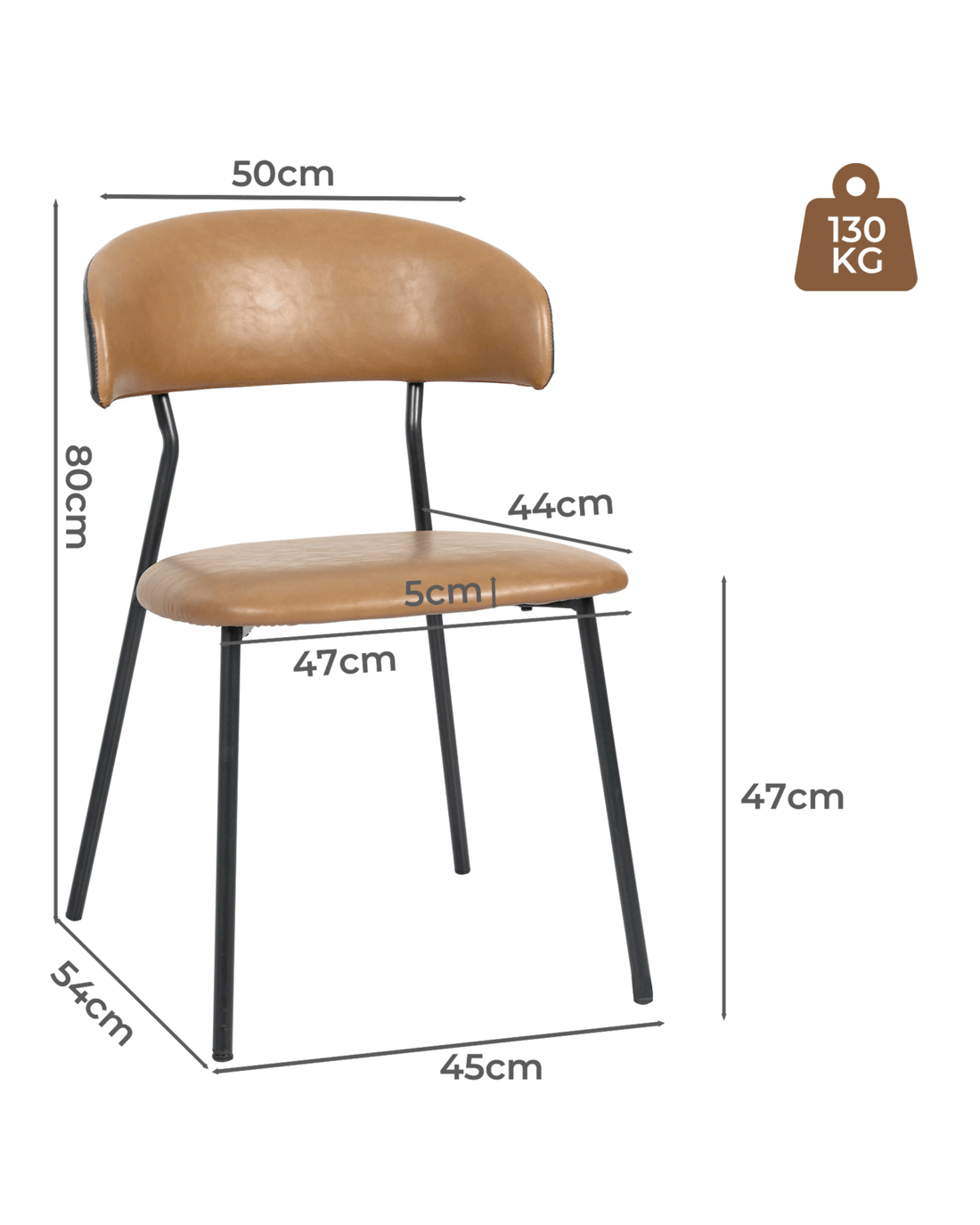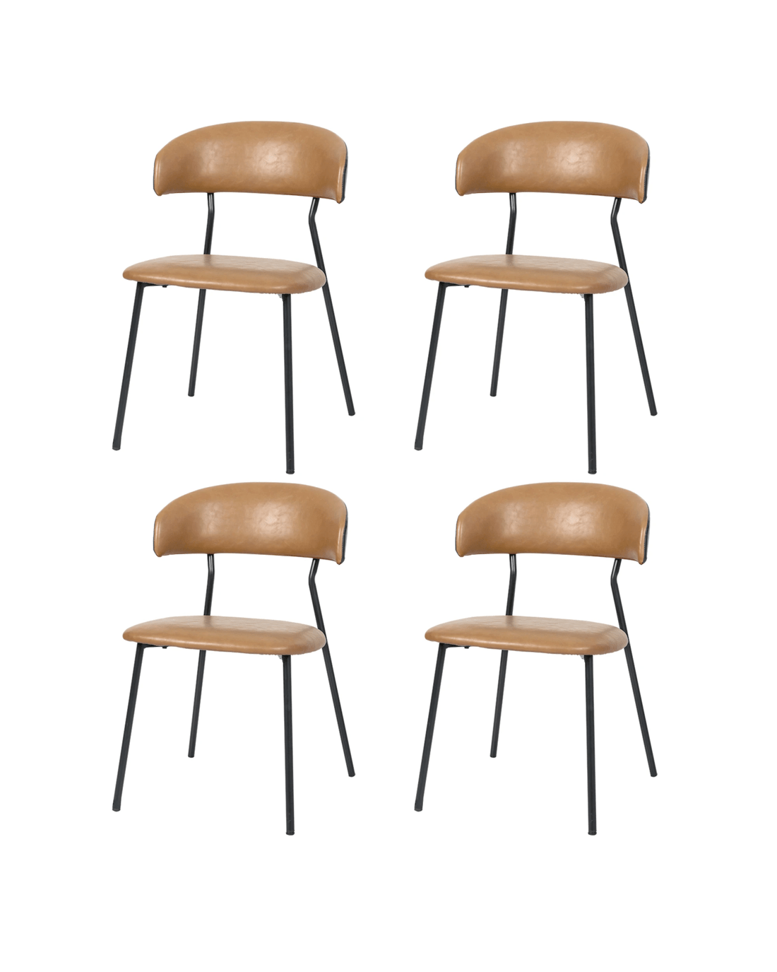 Upgrade your dining area with the Levede PU leather dining chairs, designed to bring comfort, style, and functionality to any space. These brown dining chairs feature a padded seat and a low curved back, making them ideal for long meals and gatherings. The sleek black metal legs offer strong support and a modern touch, perfectly blending with industrial and mid century interiors.
