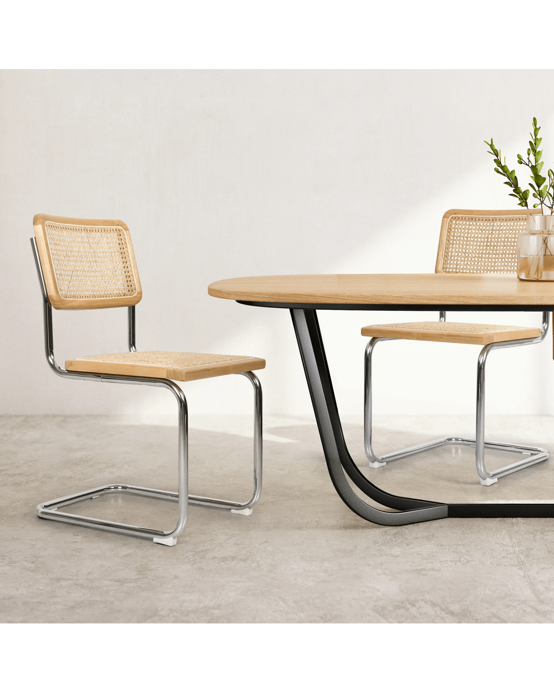 Materials: Chrome-plated steel, rubberwood, real rattan