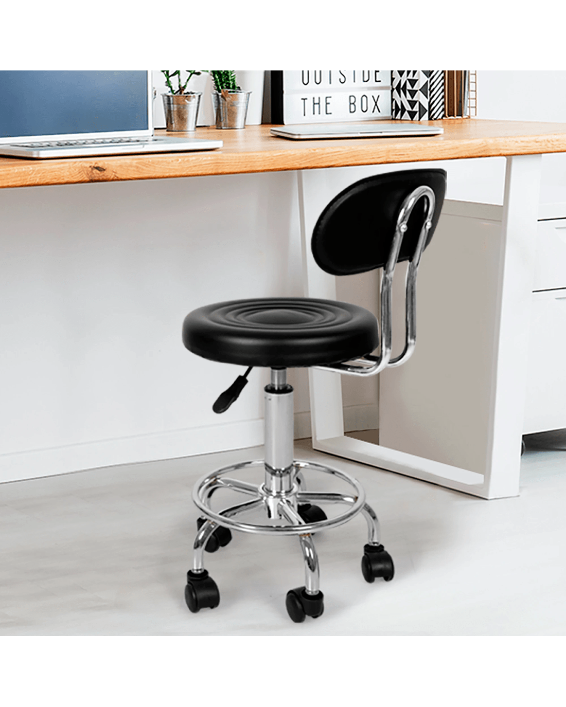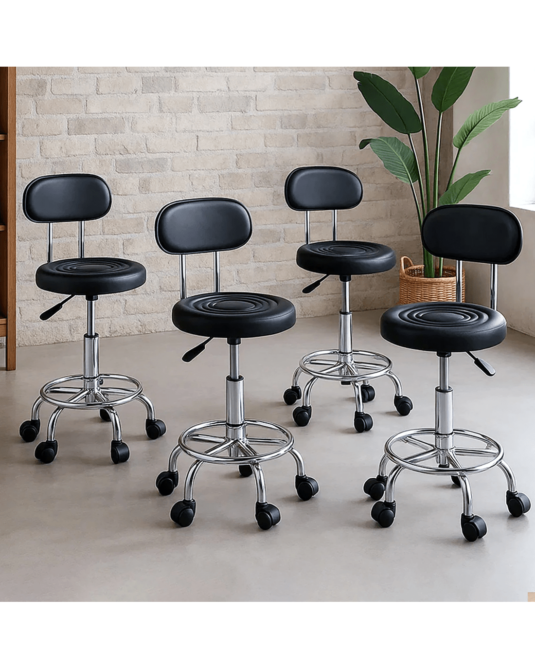 Levede Salon Stool is designed to bring versatility and mobility to your workspace. Whether you’re using it as a salon stool or part of a set of bar stools with back, it adapts effortlessly. Featuring a PU leather seat with high density foam that offers maximum comfort, it blends well with black bar stools or as a modern single bar stool. For best performance in a variety of workplaces, it comes with 360o rotation, 5 smooth-rolling casters, and circular footrest—perfect for bar stools swivel use or even swivel bar stools with back setups.
