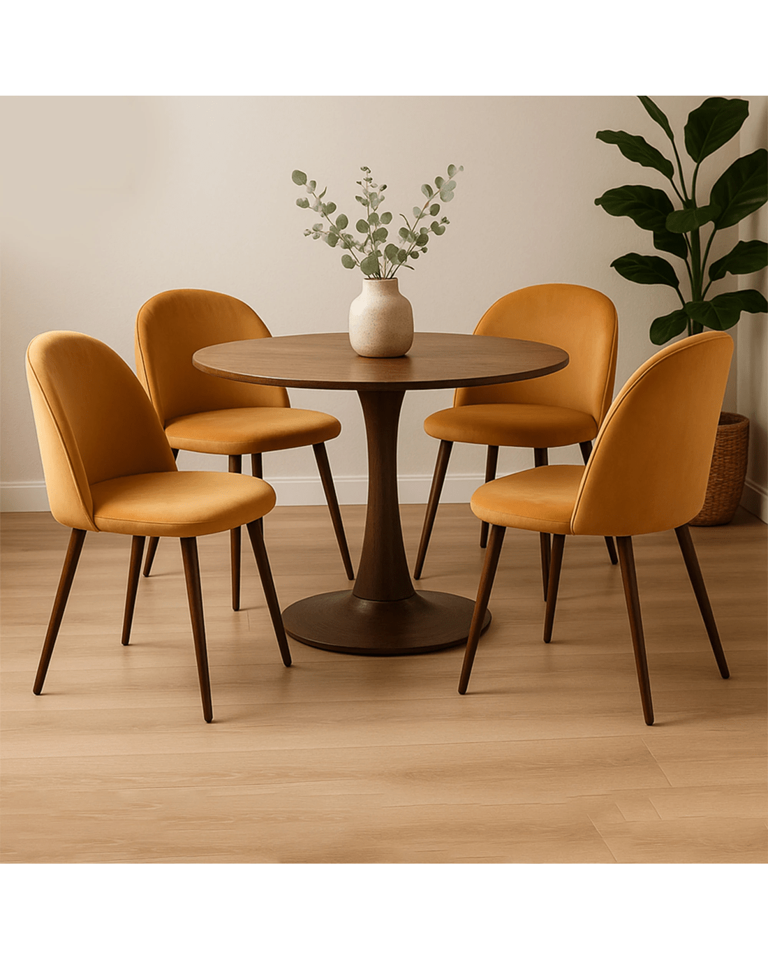 Premium Upholstery: Soft plush velvet in striking mustard adds luxury and sophistication to any dining space.