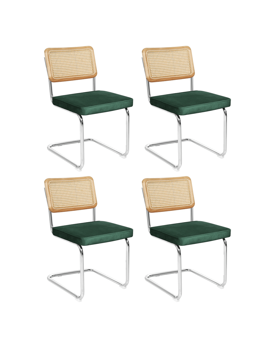 Sold by Sello ProductsLevede 4xRattan Cesca Velvet Chair Dining - Green