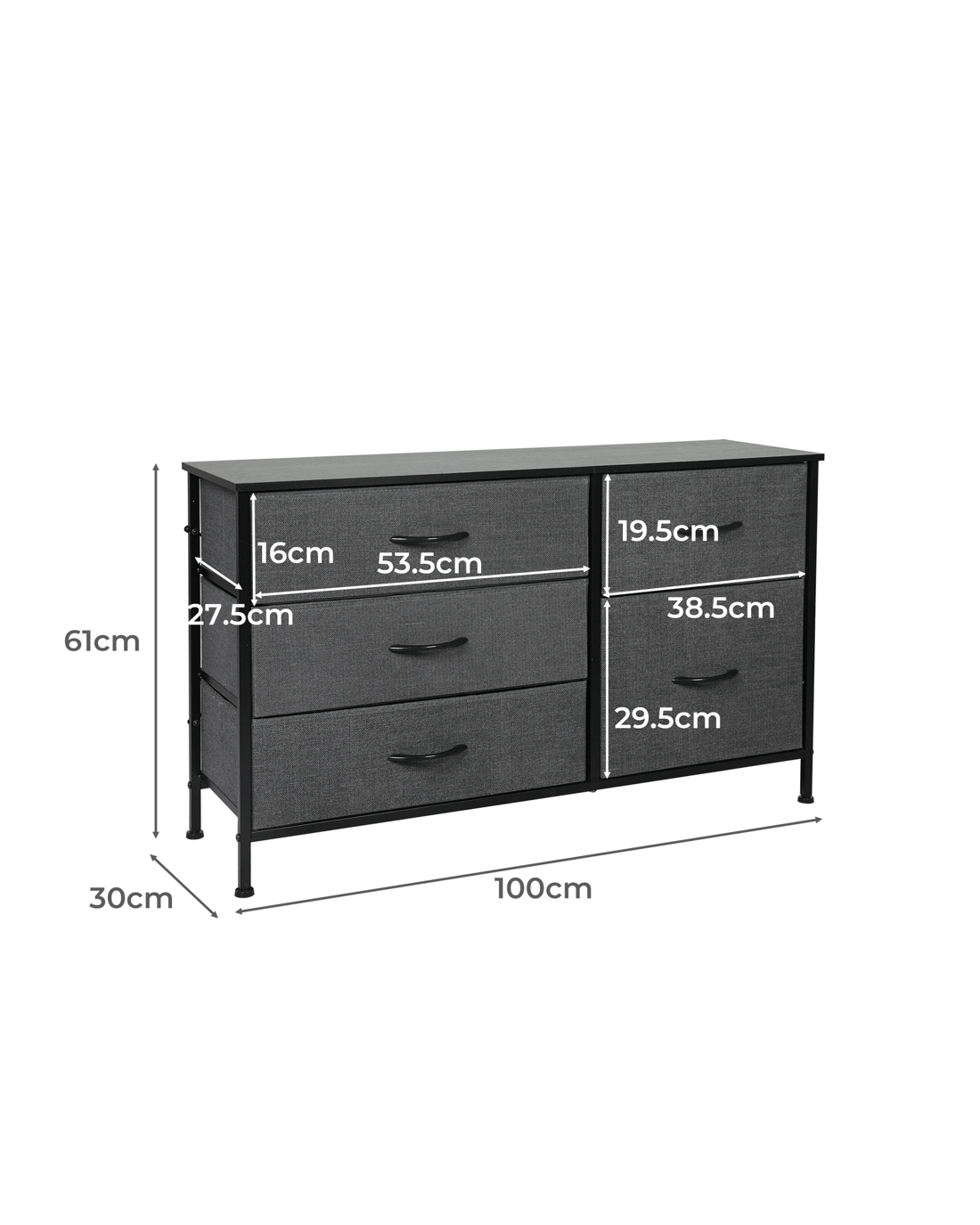 With five spacious drawers, a strong steel frame, and a durable MDF top, the Levede storage cabinet combines style with stability. Non-woven fabric drawers slide smoothly, while adjustable feet keep everything balanced.