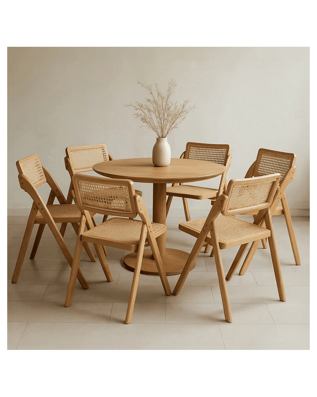 - Premium Rubber Wood & Rattan – A stylish combination of natural materials.