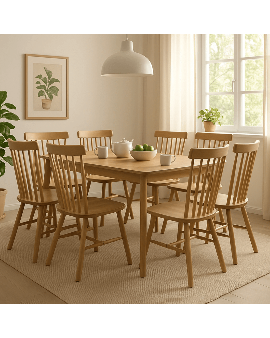 Expertly crafted from solid oak wood, these chairs provide exceptional durability and a 150kg weight capacity, making them a reliable choice for daily use. The iconic Windsor-style backrest delivers both ergonomic support and aesthetic charm, ensuring comfort while enhancing your space with a natural, warm finish.