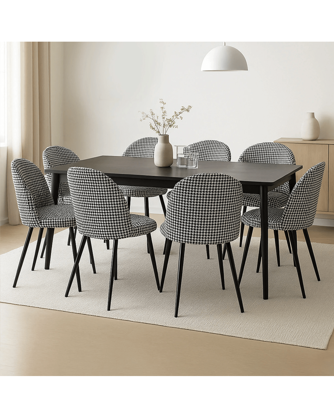 - Premium Upholstery: Luxurious plush velvet in classic houndstooth pattern combines style with durability.