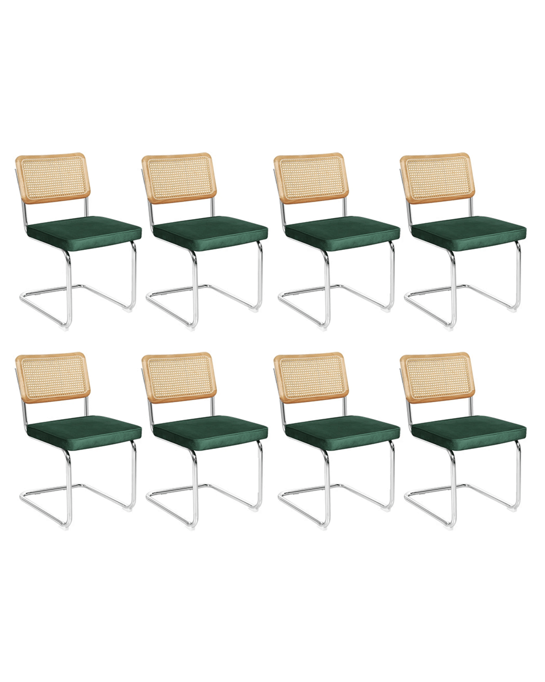 Sold by Sello ProductsLevede 8x Rattan Dining Chairs Velvet Padded - Green