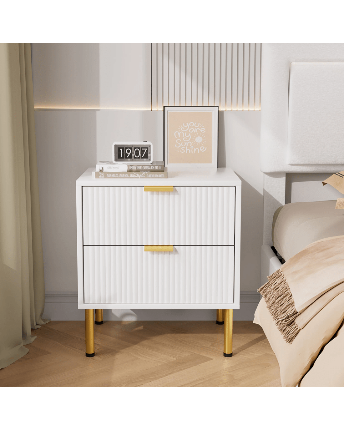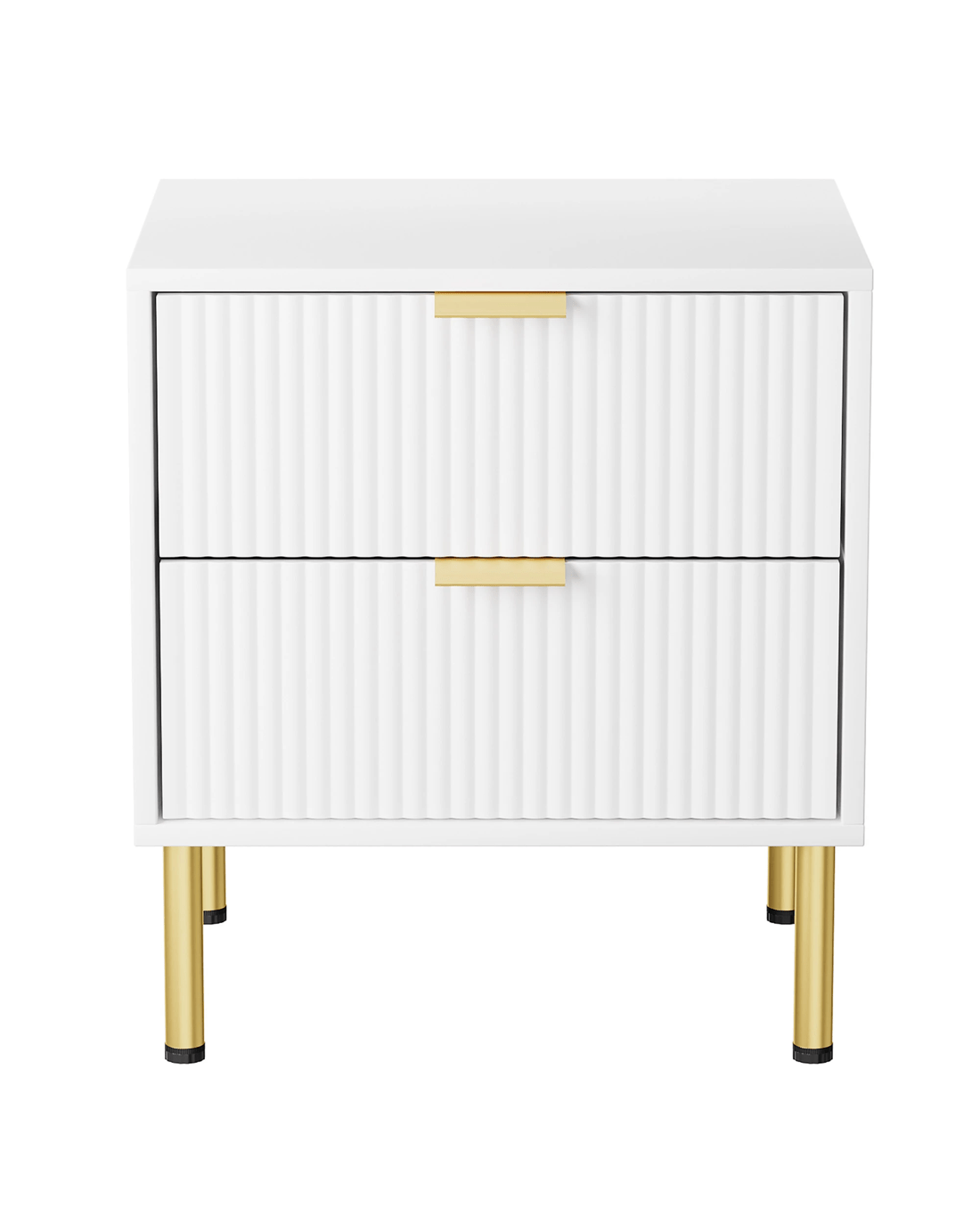 Elevate your space with this sleek metal bedside table! Featuring a crisp white finish and elegant gold handles, this modern nightstand combines style and practicality. The spacious drawers offer ample storage, helping you keep your bedroom or living room neat and organized. Perfect as a small table or end table, this versatile piece adds a touch of sophistication to any room. Whether by your bed or in your living room, this white nightstand is the perfect blend of modern design and everyday convenience!
