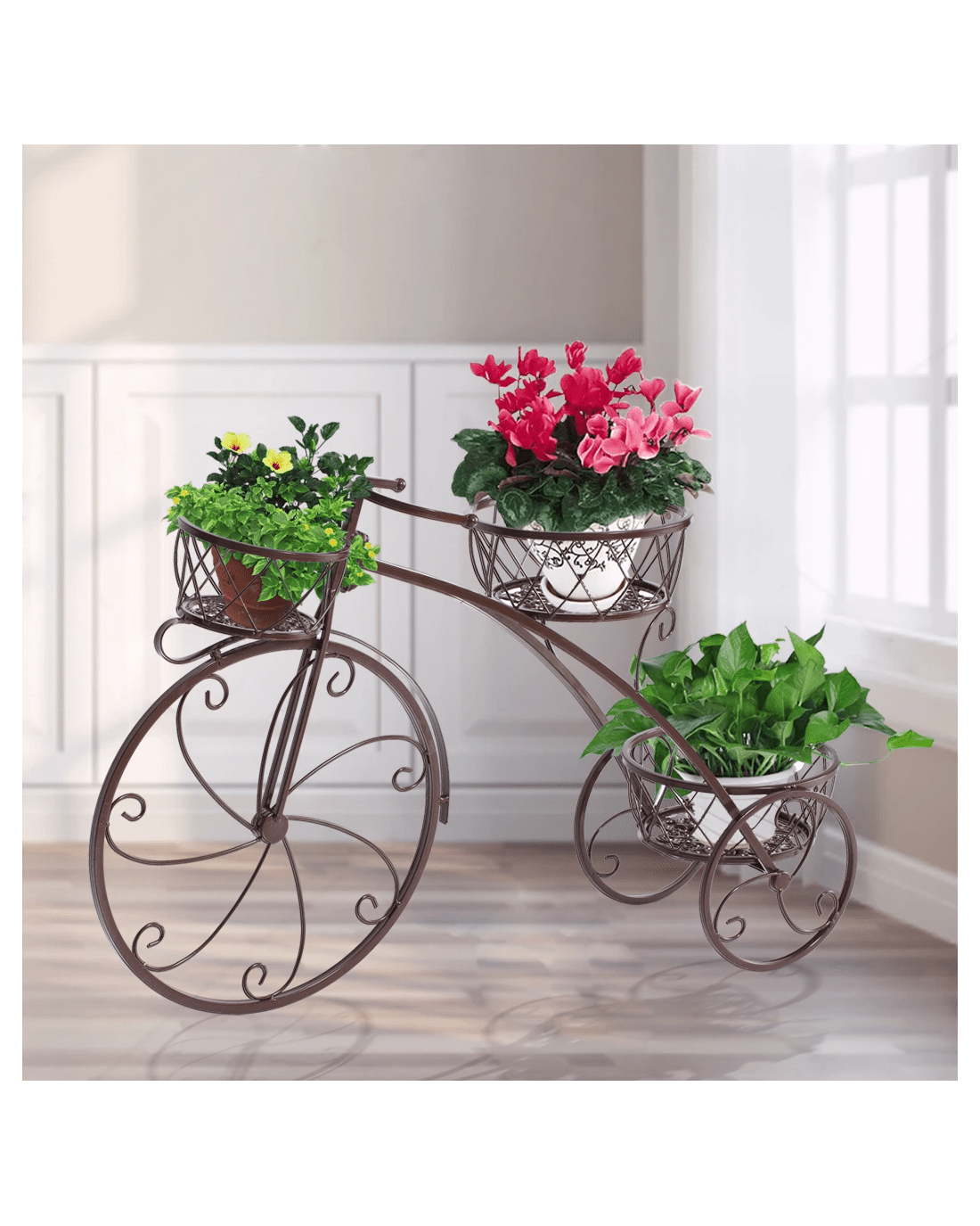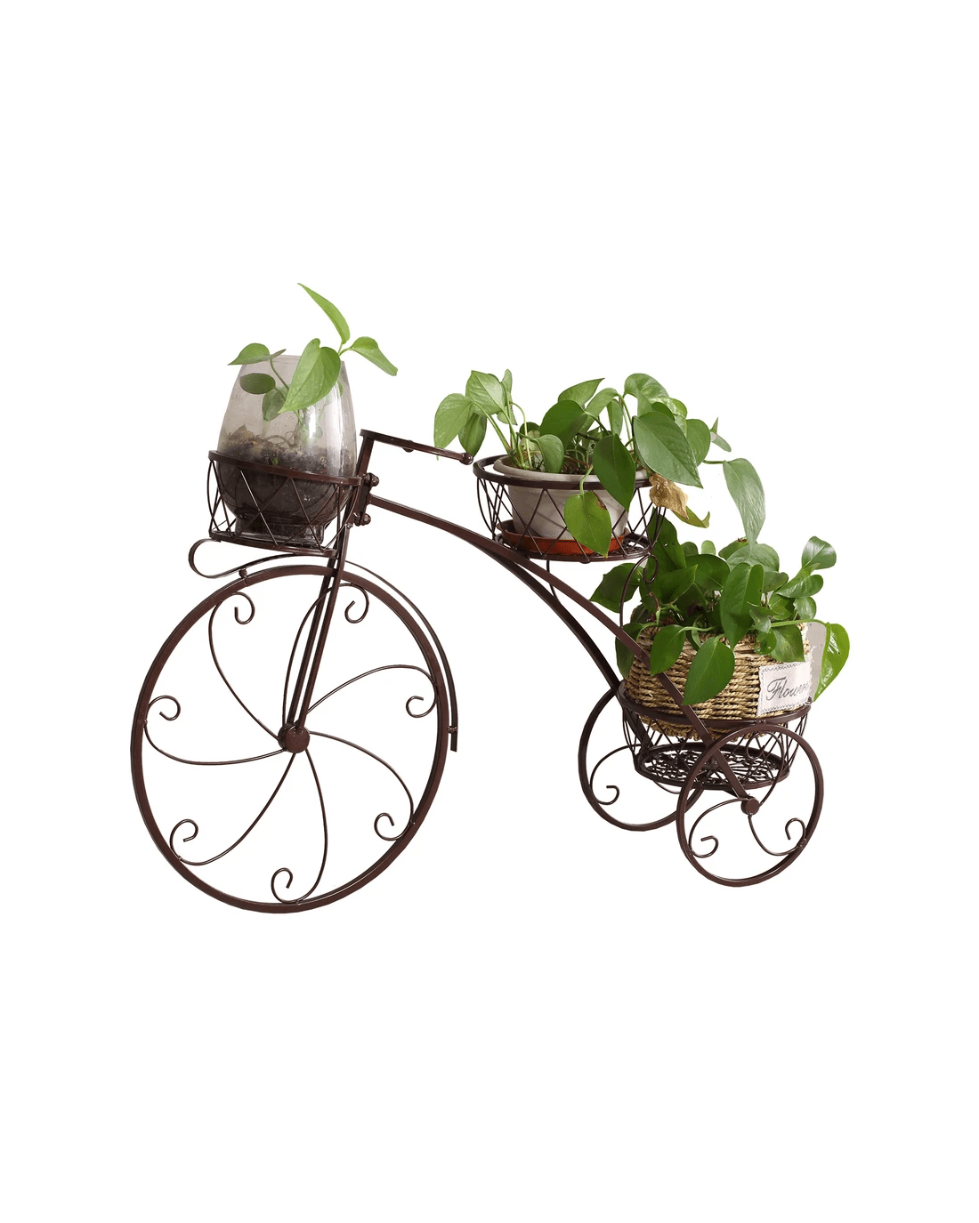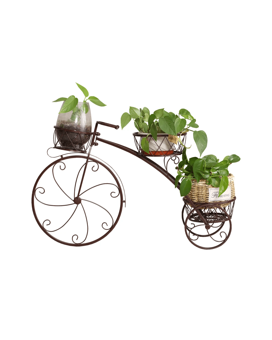Sold by Sello ProductsLevede Bicycle Shape Metal Plant Stand with 3 Plant Pots Space - Bronze