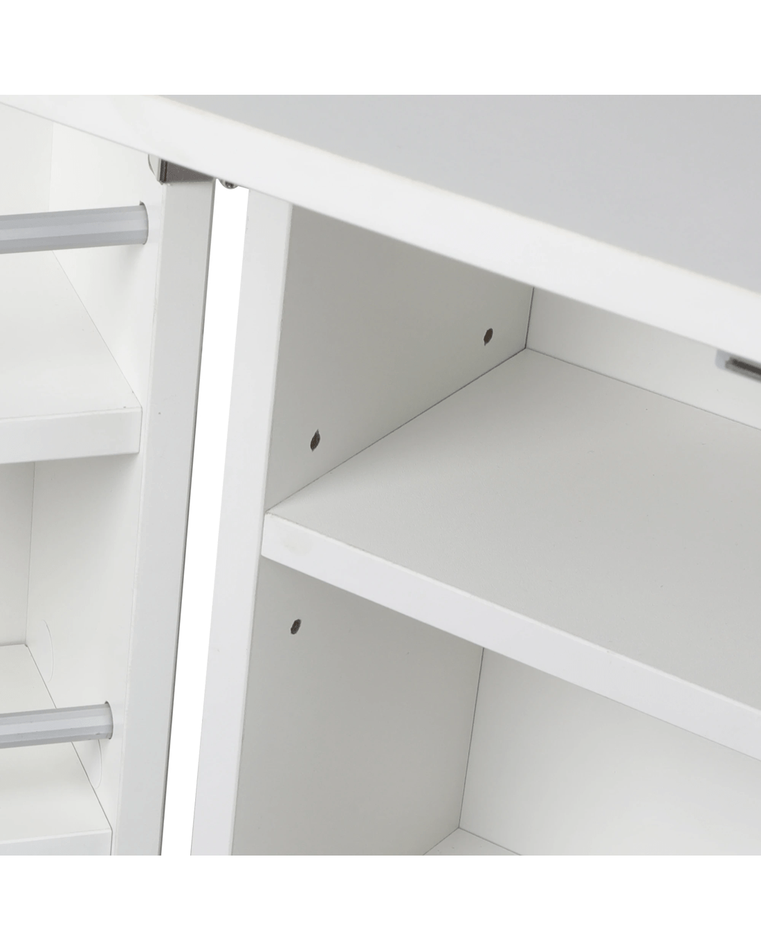 Crafted with precision from 15mm MDF and particle board, this buffet sideboard features a robust build and high gloss finish that adds sophistication to any setting. Its 180° double door style opens to reveal four adjustable shelf levels and a generous twelve inner door shelves, providing flexible storage tailored to your needs. Chrome-finished pull handles and clean lines enhance its minimalist appeal.