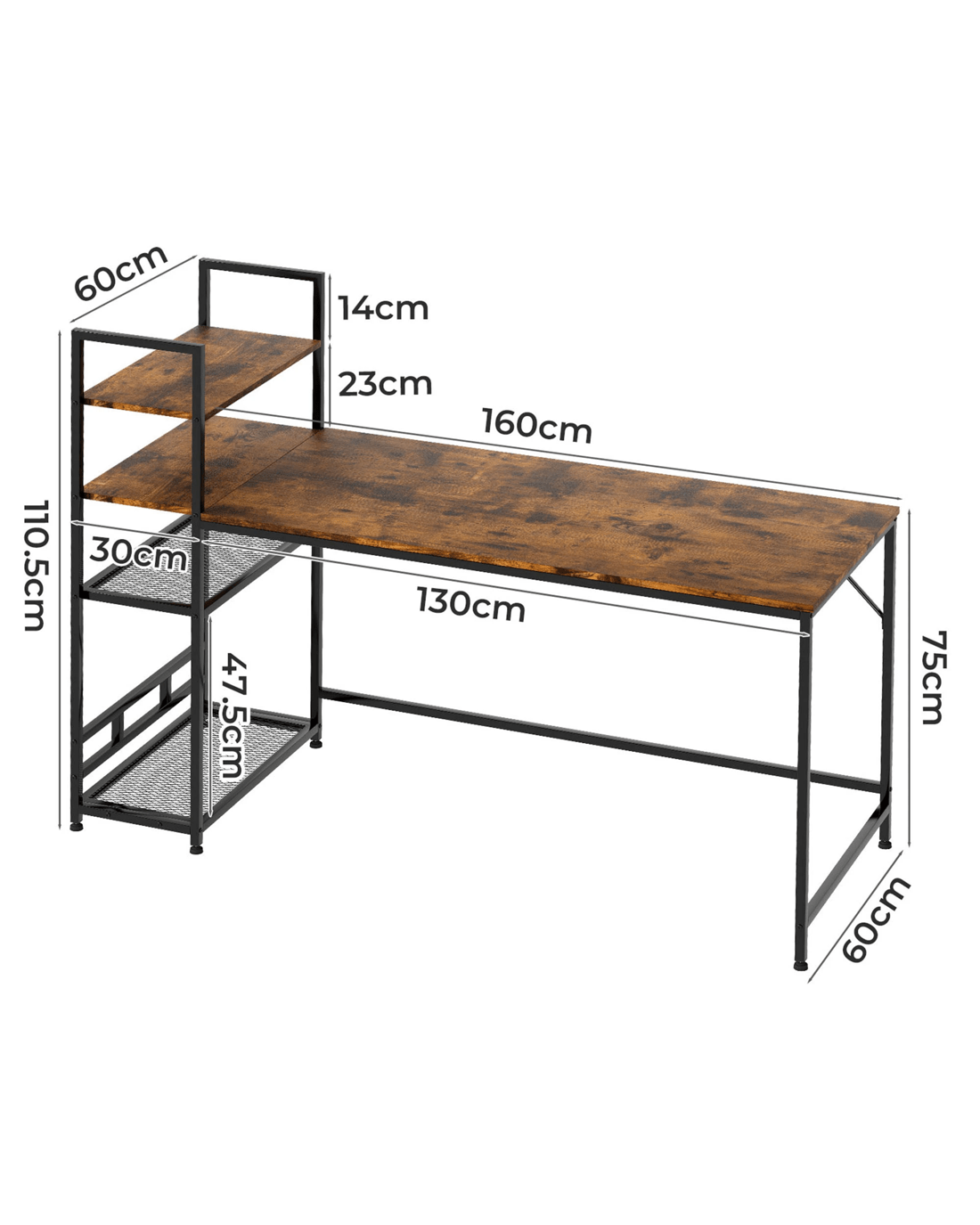 Perfect for bedrooms, living rooms, or study areas, the Levede computer desk with storage shelves meets multiple home and office needs, blending storage, functionality, and style seamlessly.
