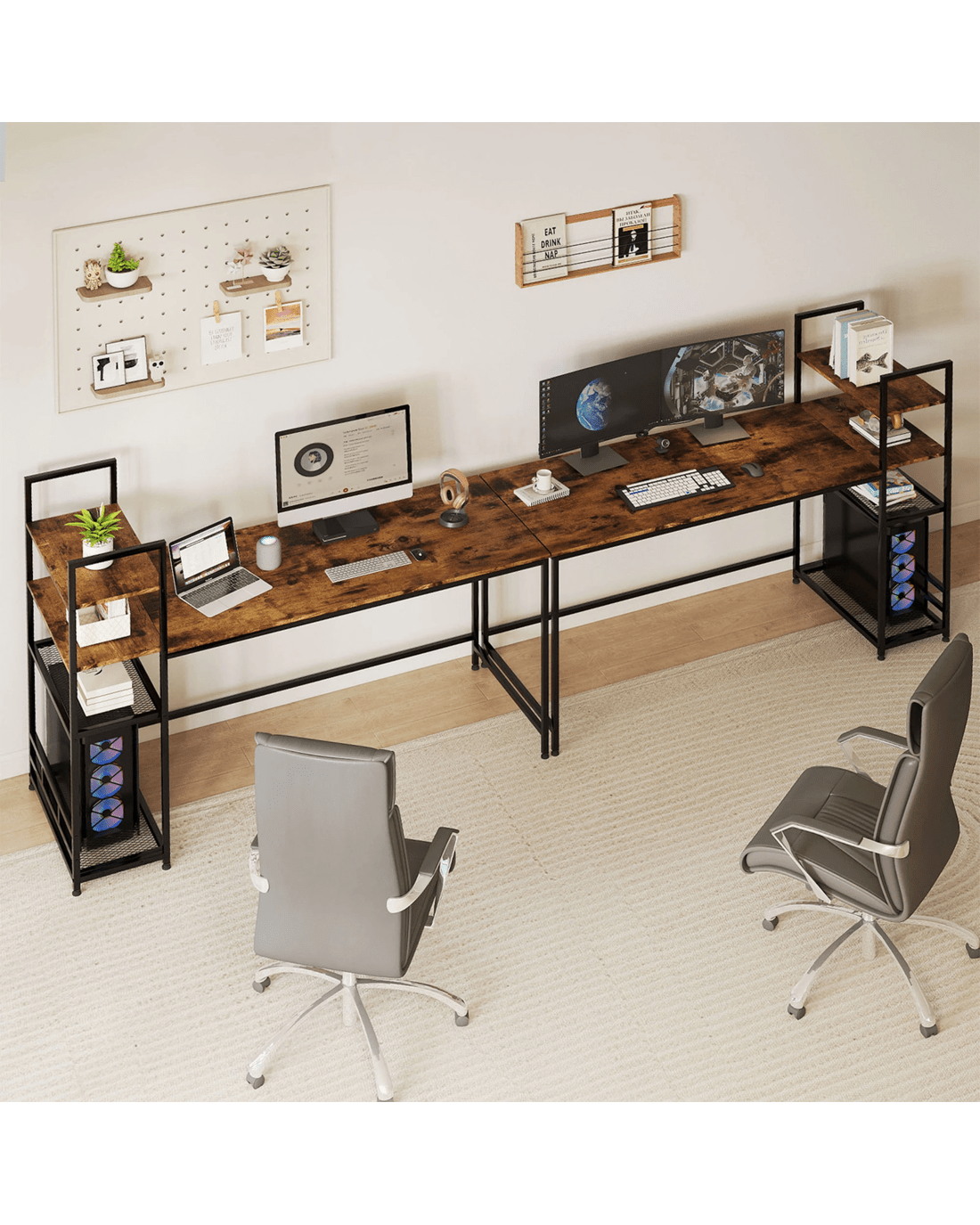 Crafted with high-quality E1-grade particleboard and a durable steel frame, the Levede brown desk features a waterproof and scratch-resistant surface that keeps your workspace pristine. The anti-slip feet protect your floors while reducing noise during movement, making it a reliable addition to any room.