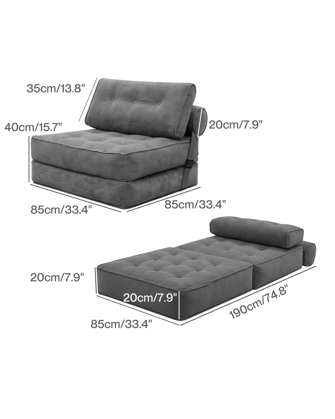 Levede Convertible Sofa Bed Foldable Single Sleeper Bed Compact Living Room Grey - Grey