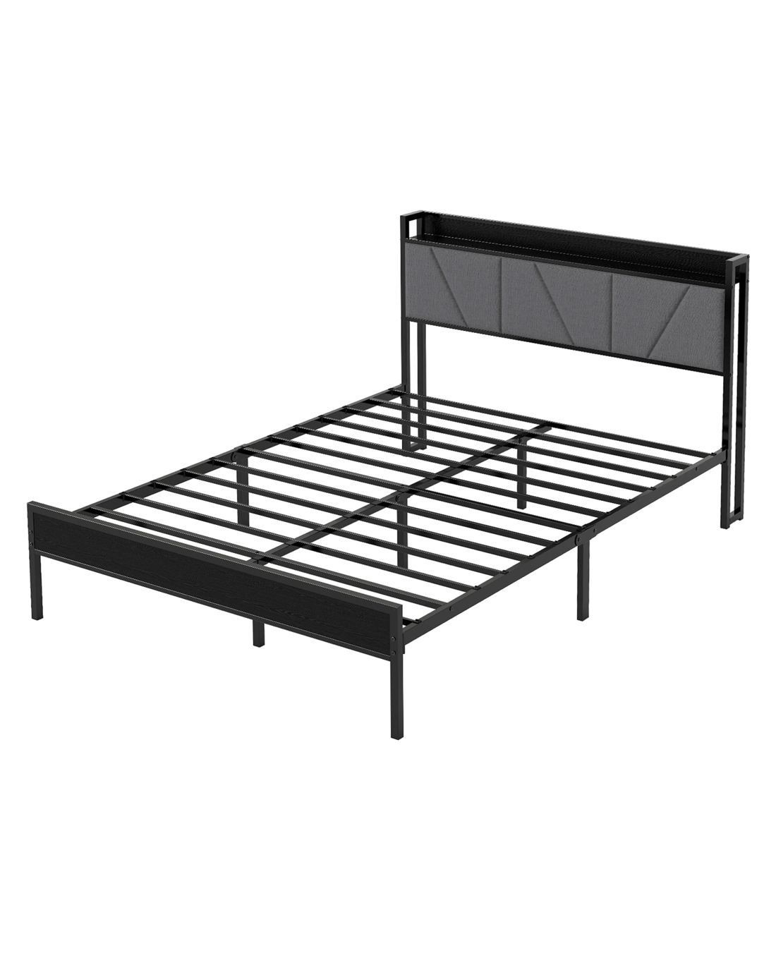 Sold by Sello ProductsLevede Double Bed Frame with Storage Headboard and Charging Station - Grey