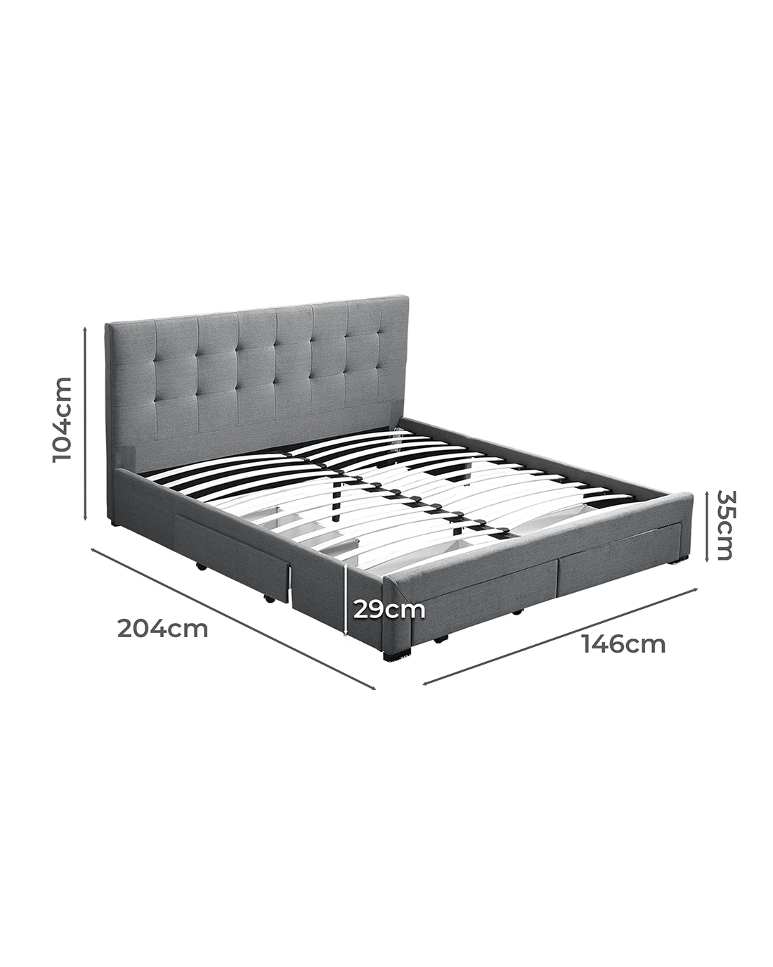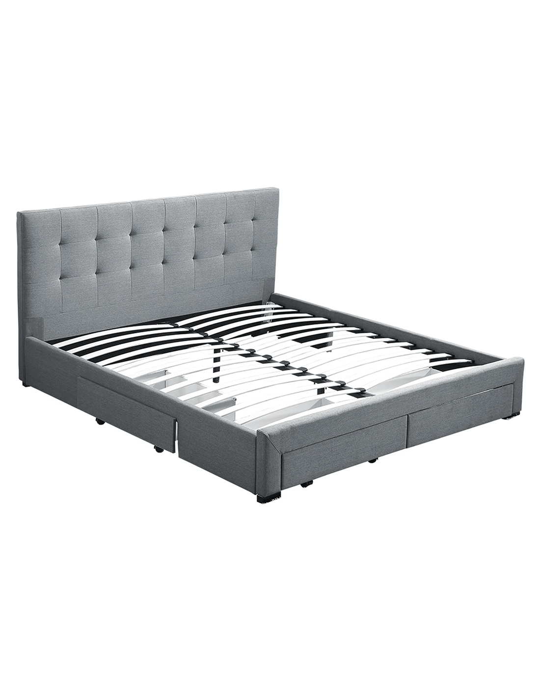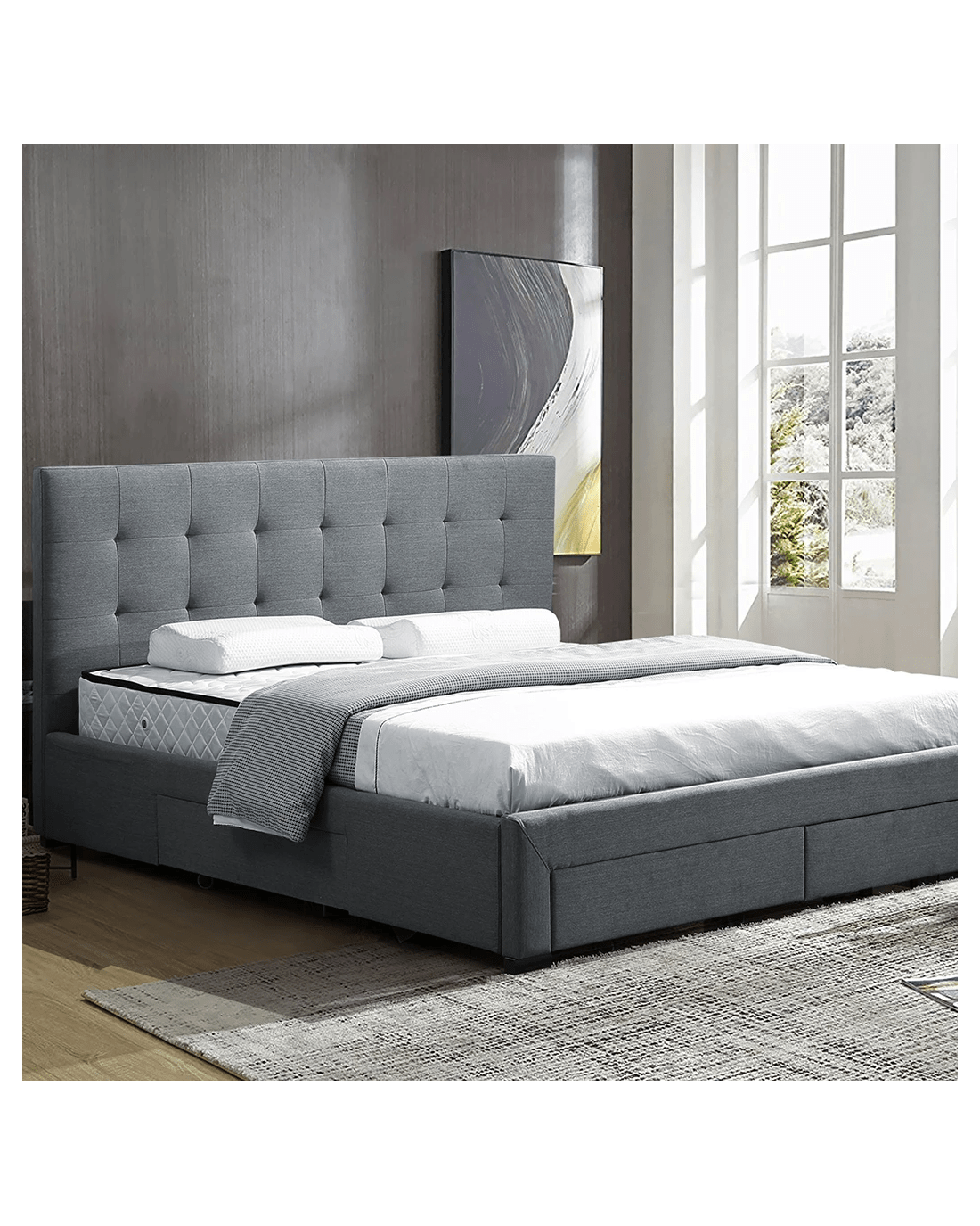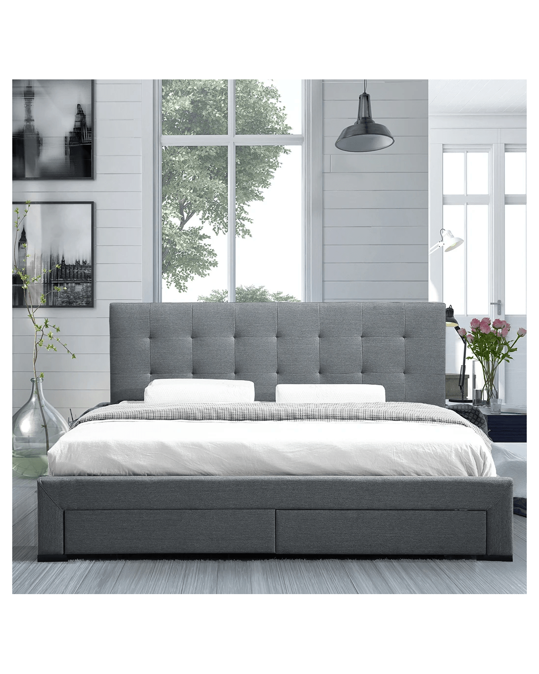 If you're looking to for an attractive bed keep your space clutter-free, our fabric bed with storage drawers is the perfect choice for you. The frame is constructed with a sturdy wood frame that's wrapped with cotton and linen fabric will look stunning in any bedroom in your home. Not only does it provide a stylish place to sleep, but the storage drawers will help you keep your space clutter-free.