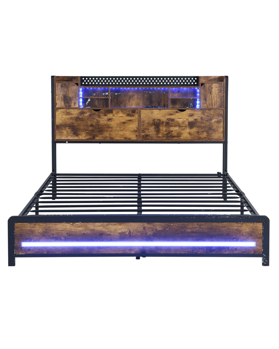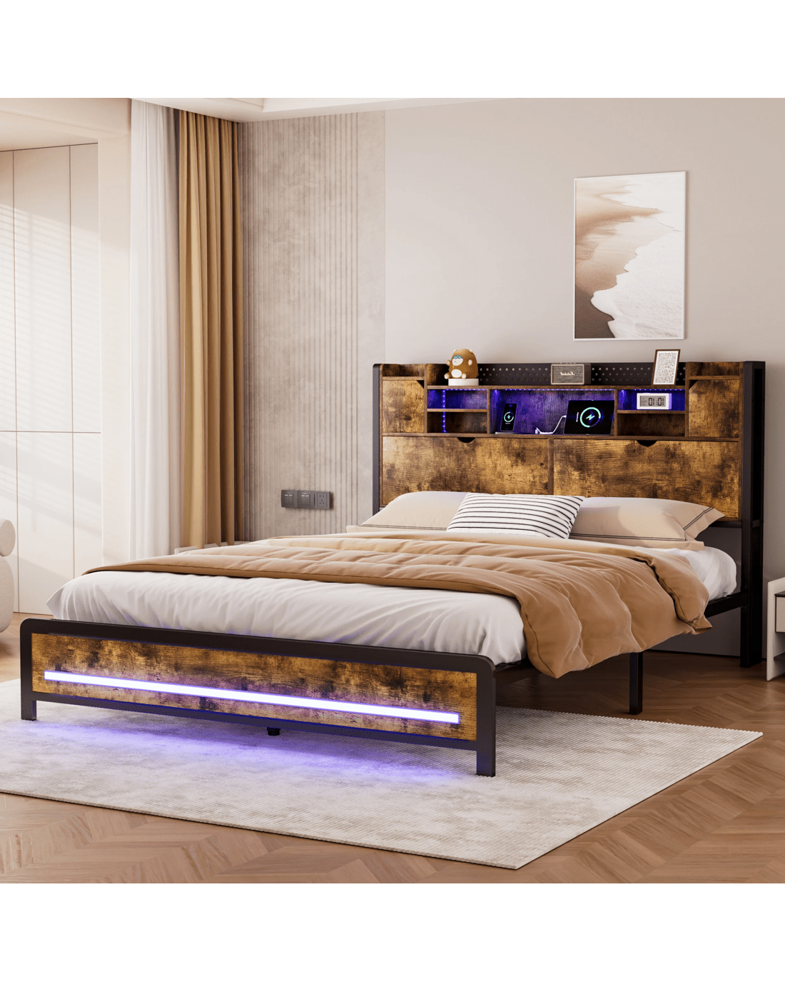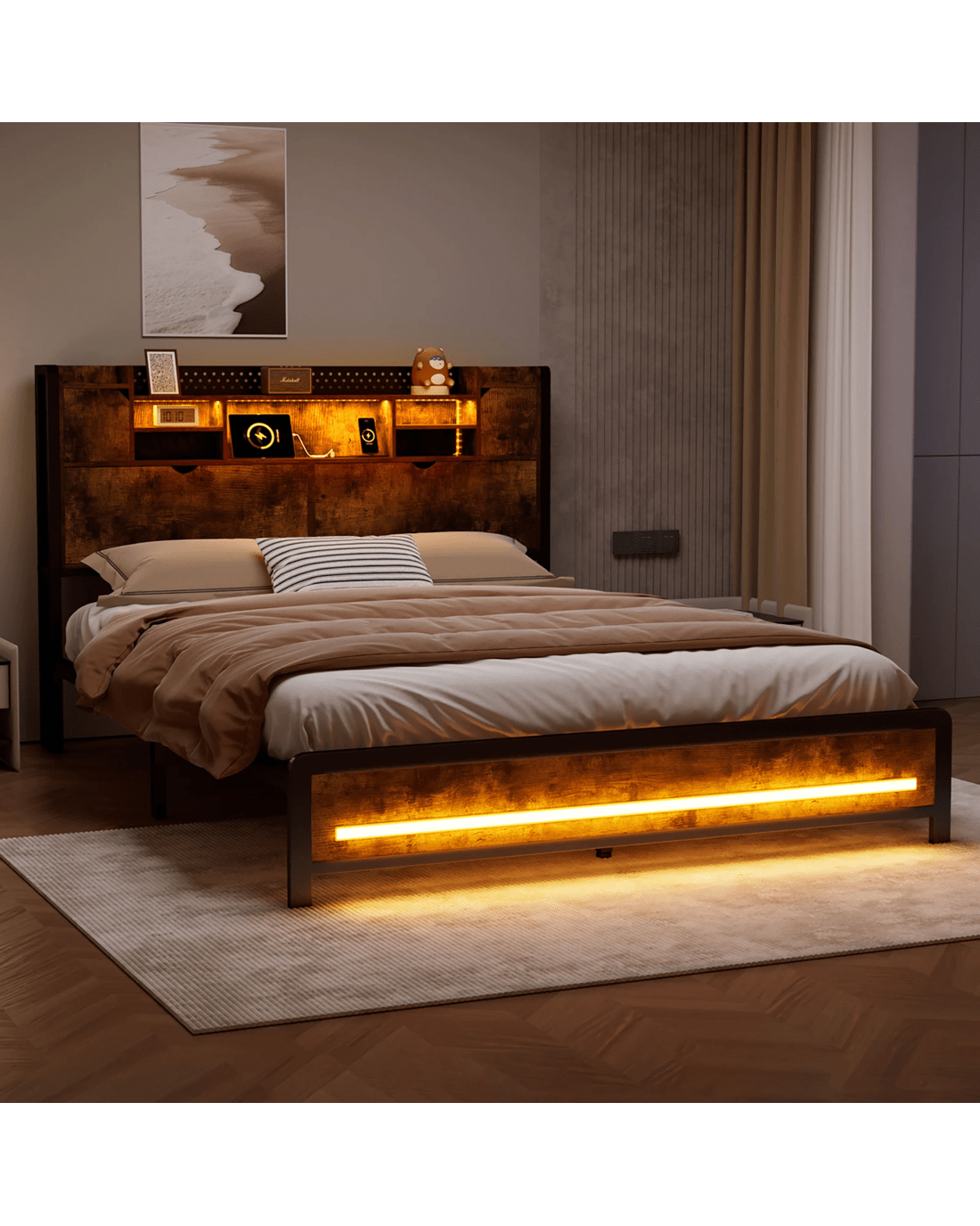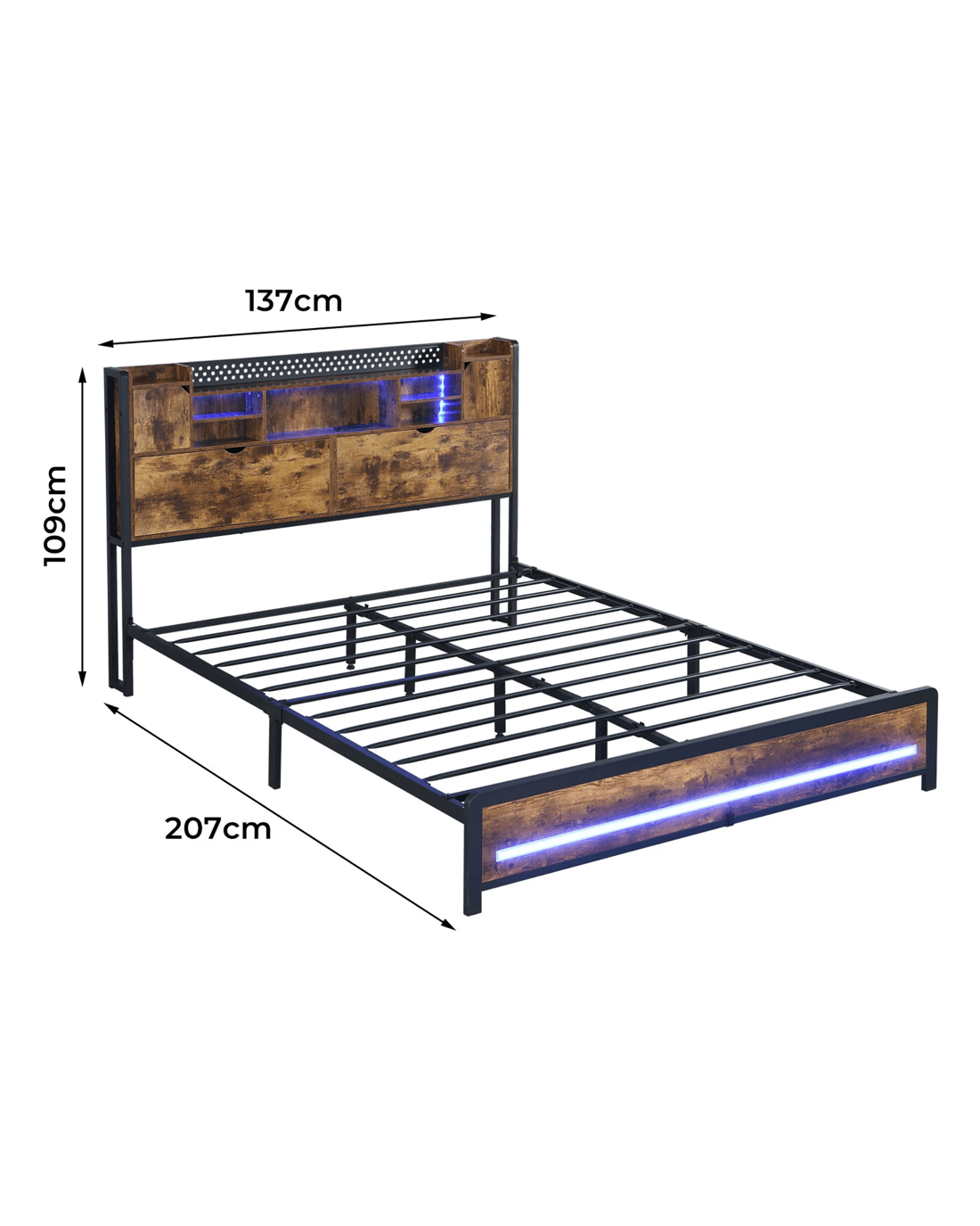 Sold by Sello ProductsLevede Double Size Bed Frame Industrial with LED Charging Station and Storage Bedhead