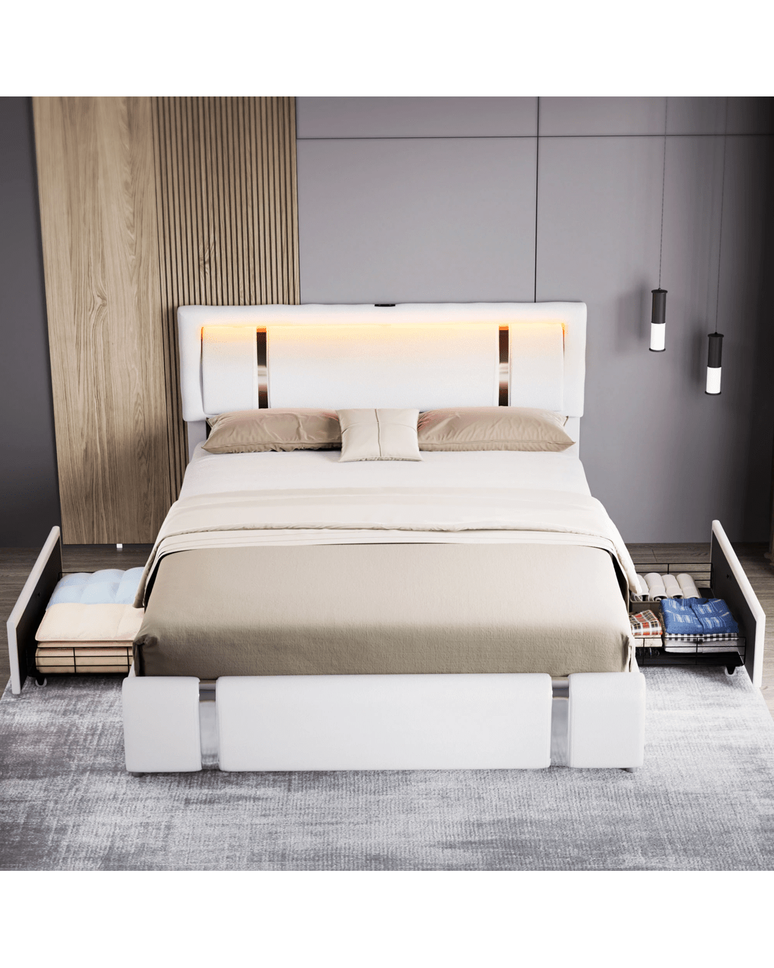 Levede Double Size Bed Frame PU with LED USB and 2 Drawers
