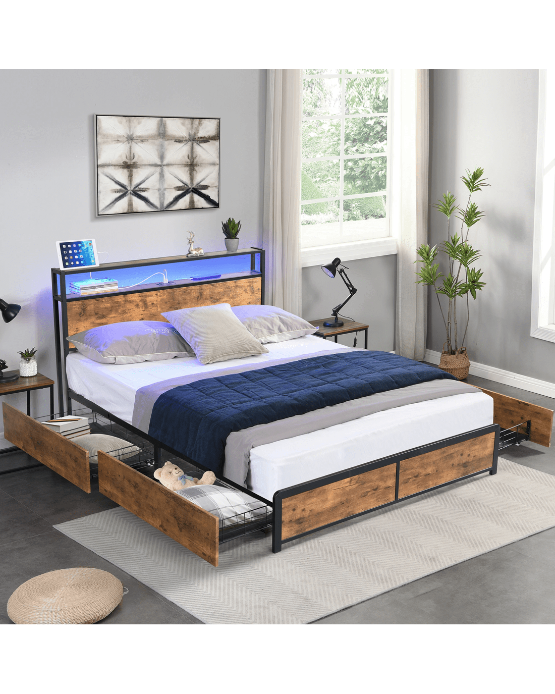 - Industrial RGB LED bed frame