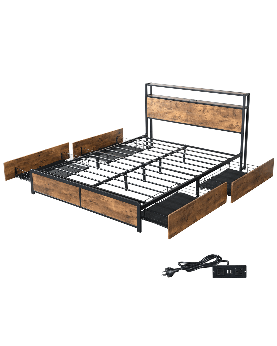 - Storage headboard with charging station (2 AC outlets and 2 USB ports)