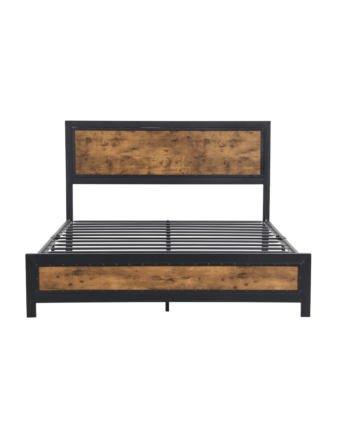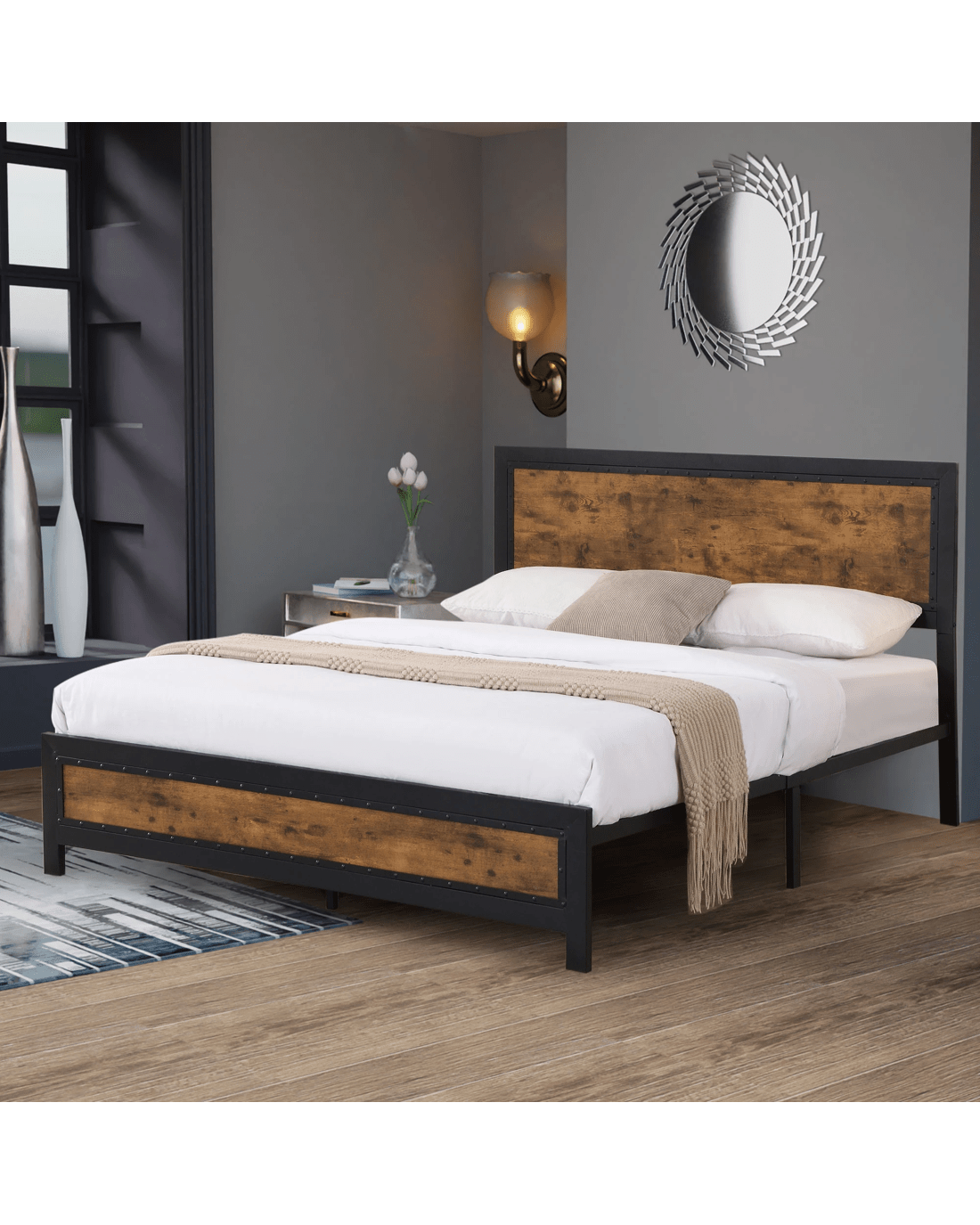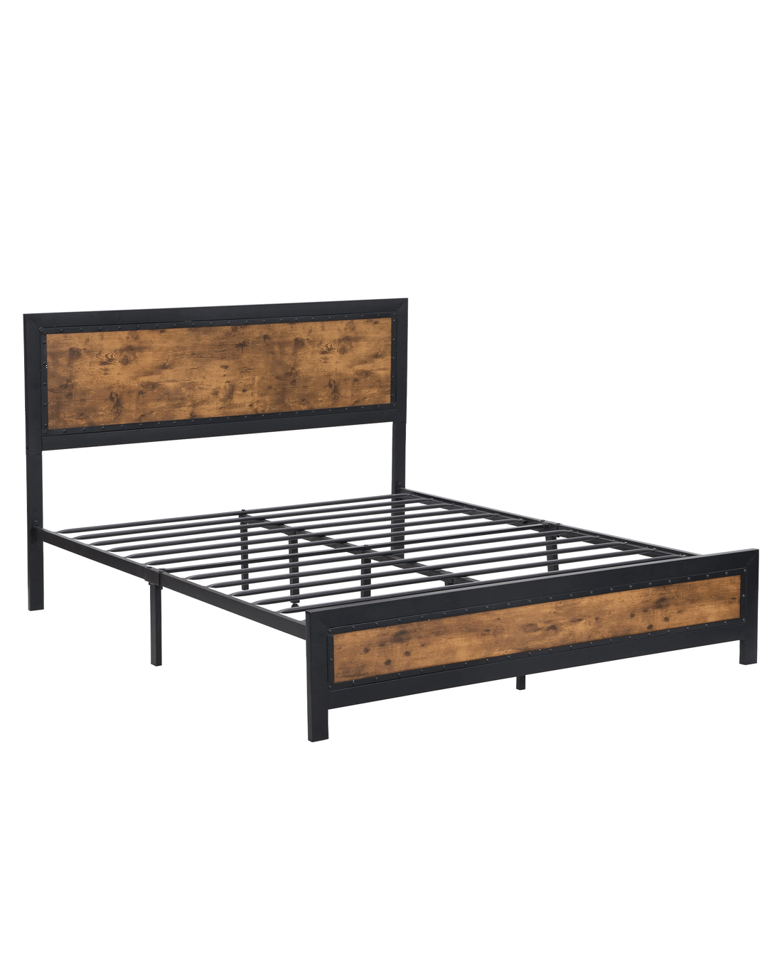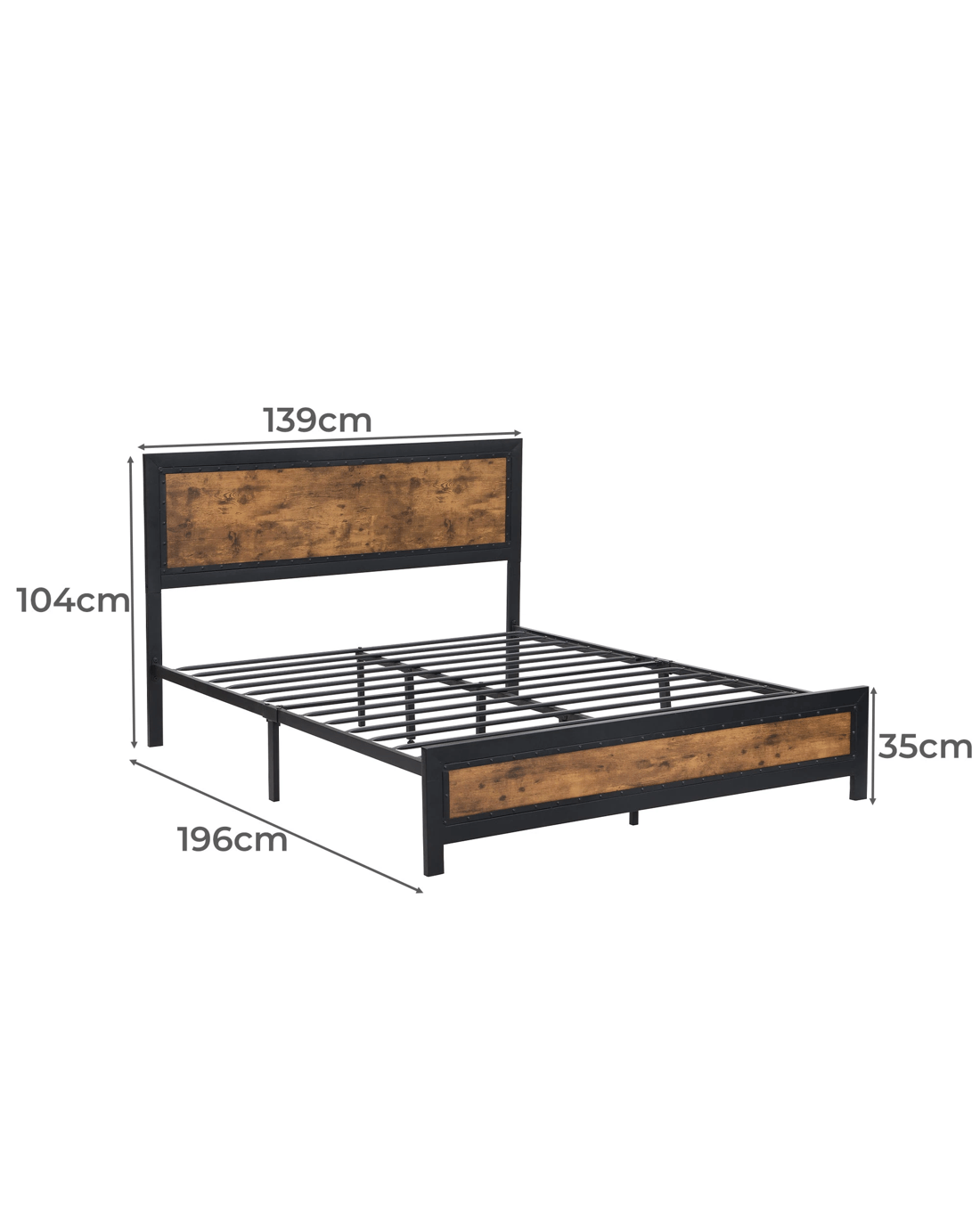 Sold by Sello ProductsLevede Double Size Metal Bed Frame Wooden Brown Bedhead