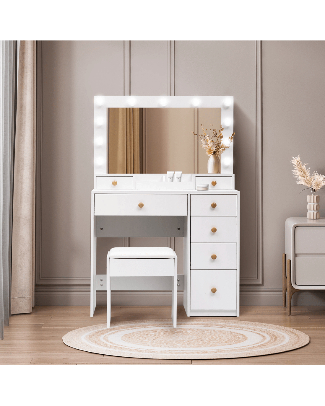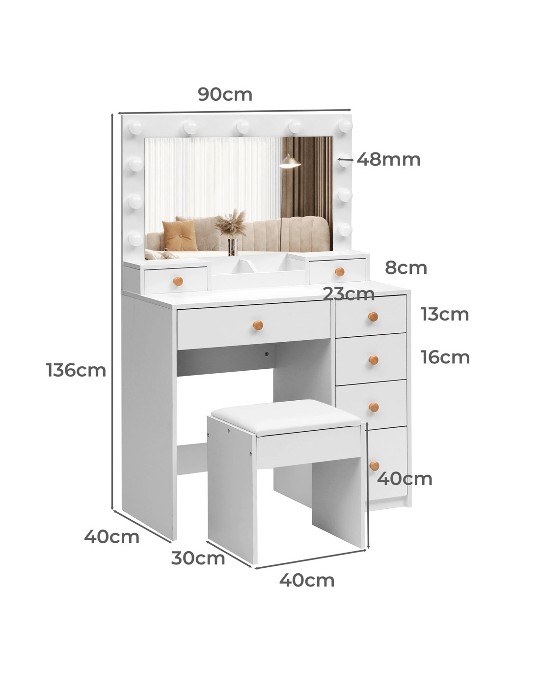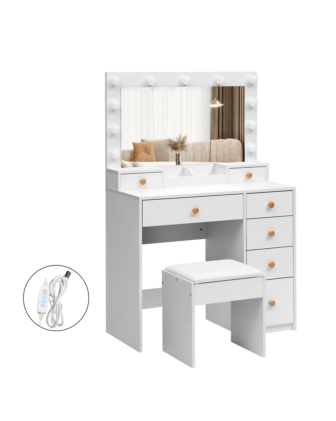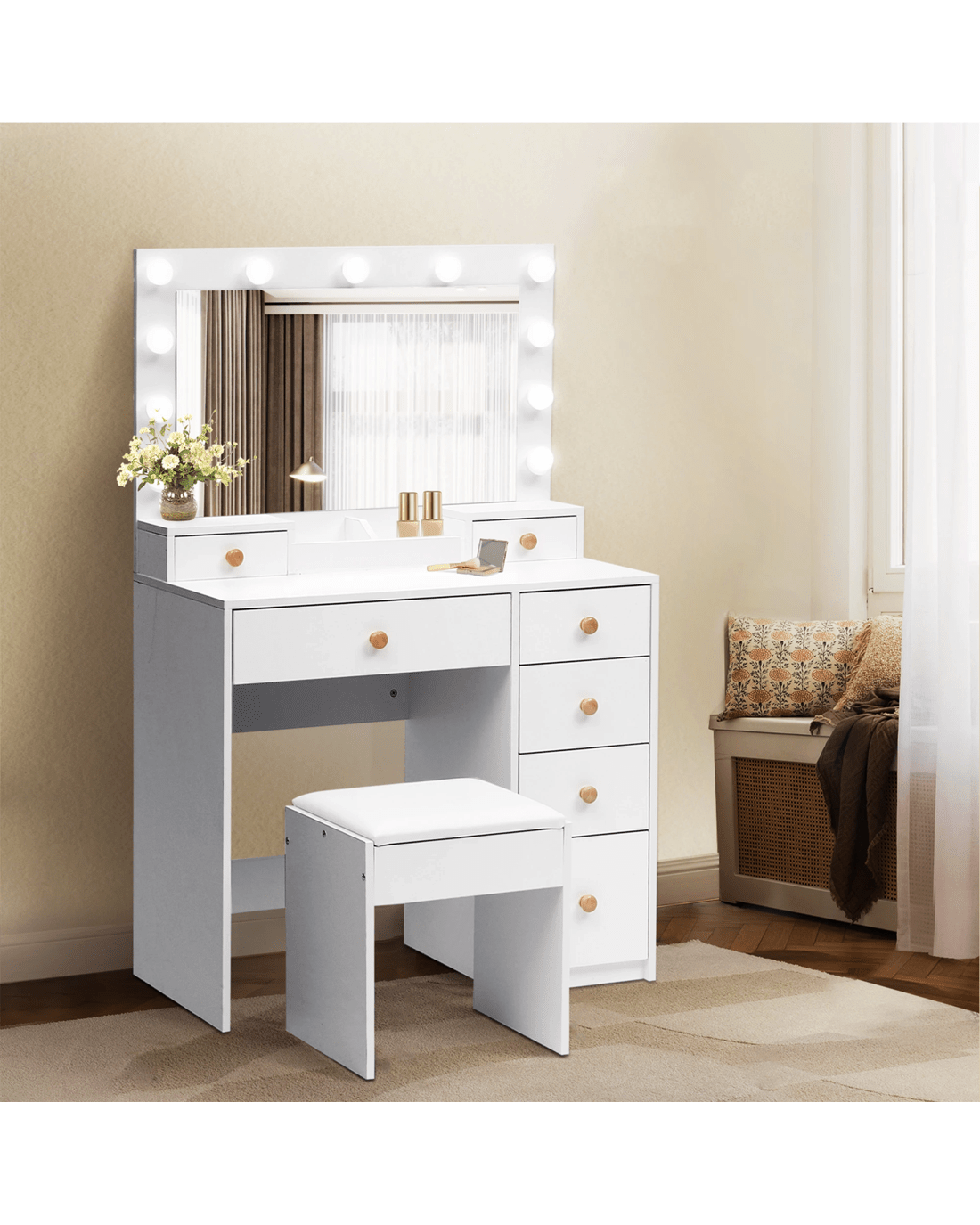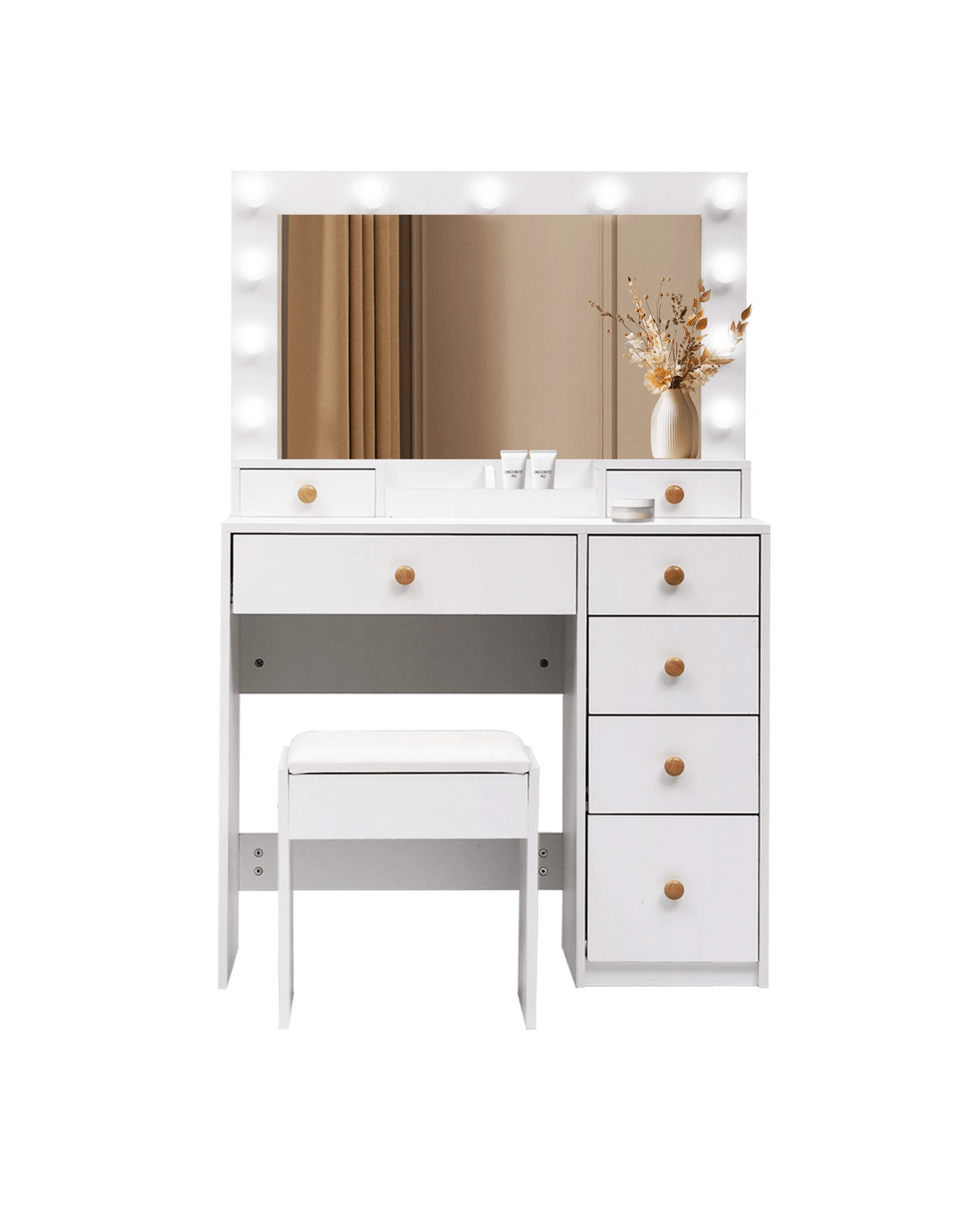 Sold by Sello ProductsLevede Dressing Table Stool Set 11 Bulb Makeup Mirror Vanity Desk Cabinet White