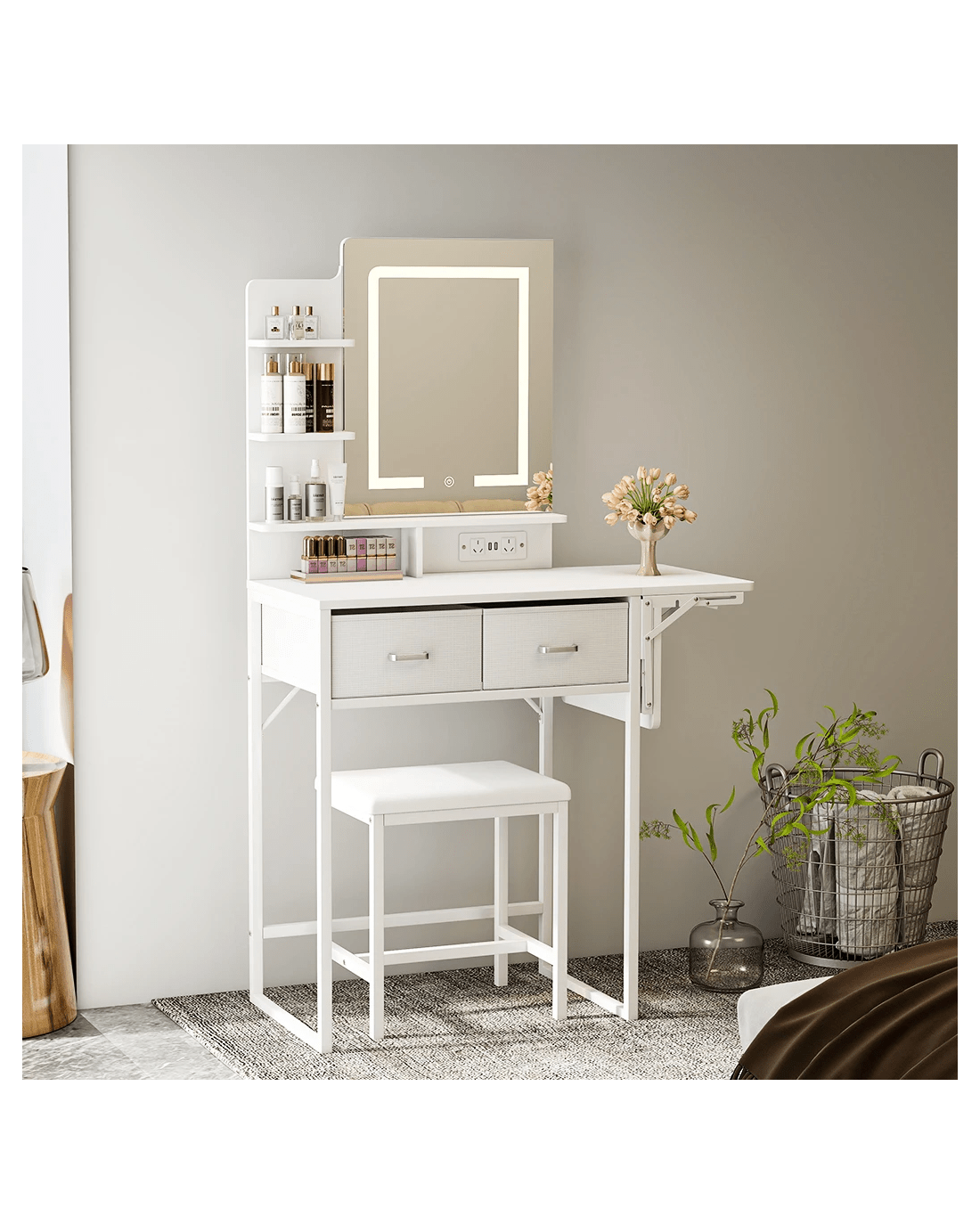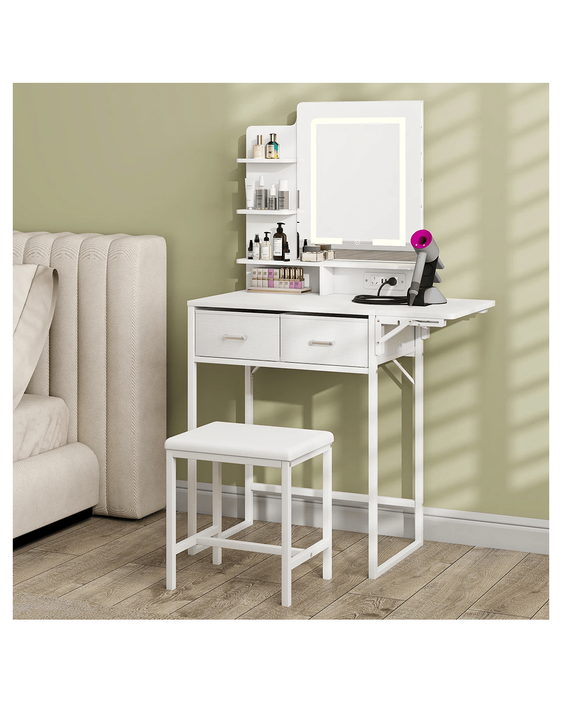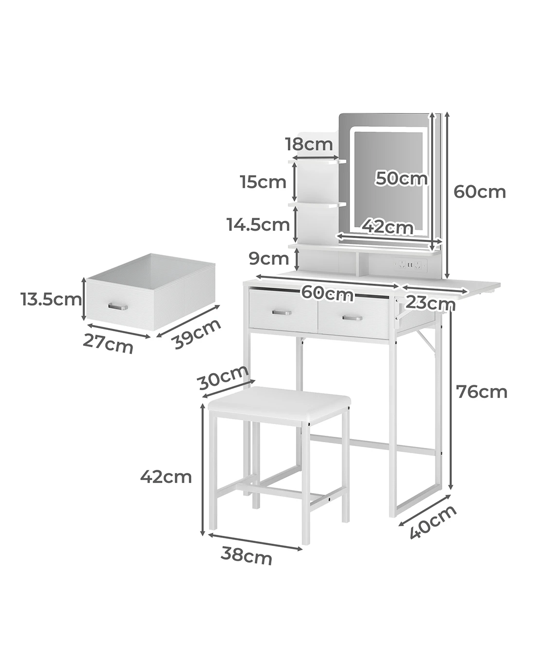 Levede Dressing Table Vanity Desk with Mirror and Lights 2 Drawers White