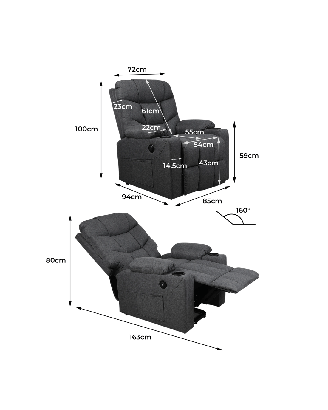 Sold by Sello ProductsLevede Electric Recliner Chair - Grey