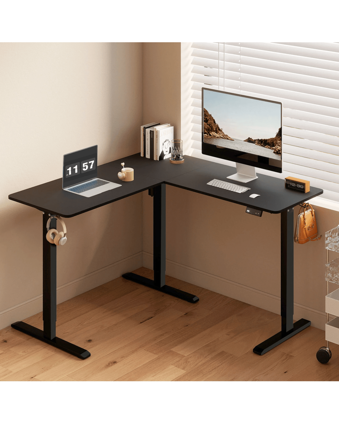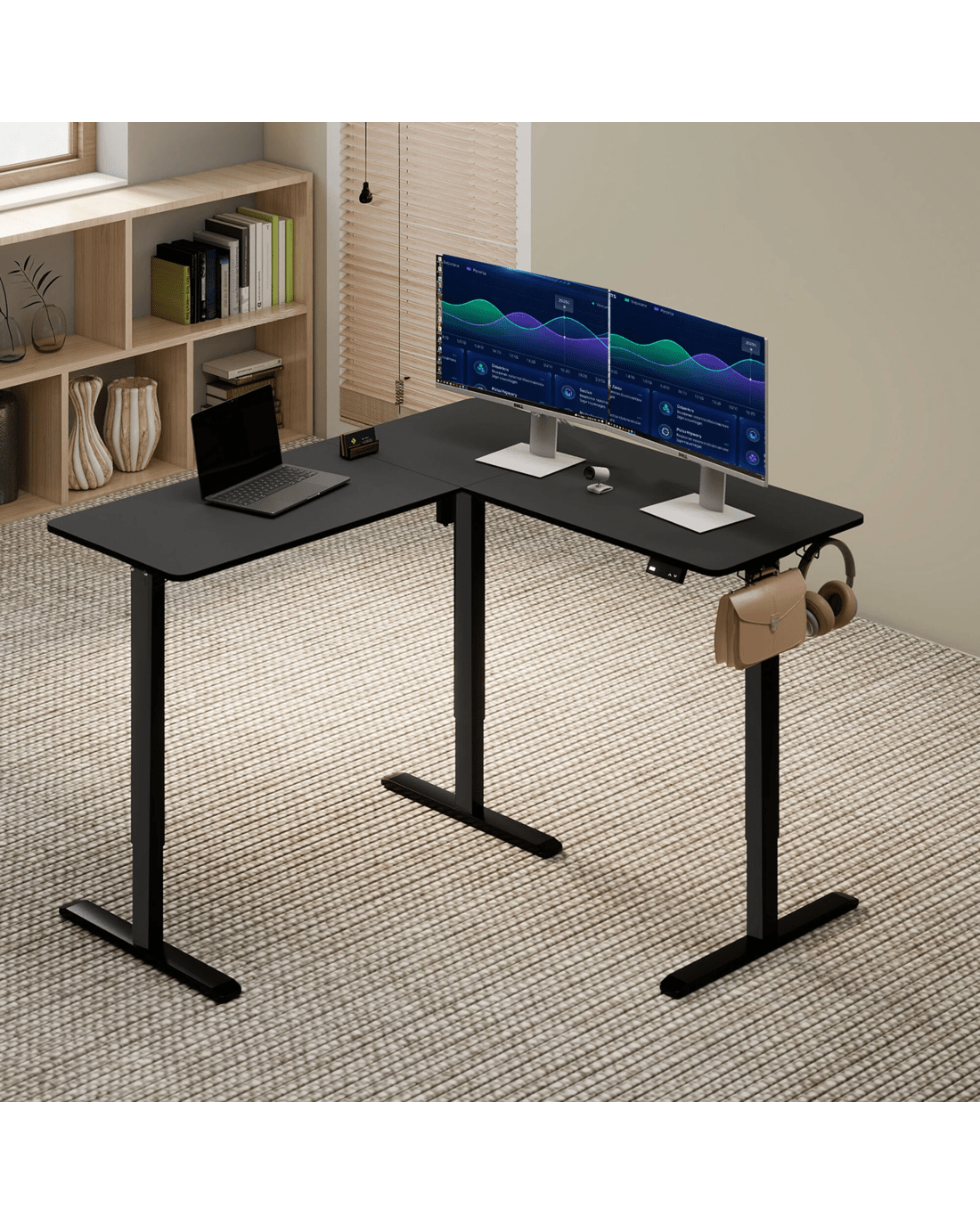 With a 130×50cm main desk and 80×50cm secondary surface, plus 2 convenient hooks for headphones or bags, this Levede standing desk with memory is perfect for multi-tasking, gaming setups, or home office organization. The bottom frame includes adjustable feet to ensure stability on uneven floors. Upgrade your work environment with this height adjustable standing desk from Levede, a reliable home office standing desk that combines ergonomics, safety, and style.