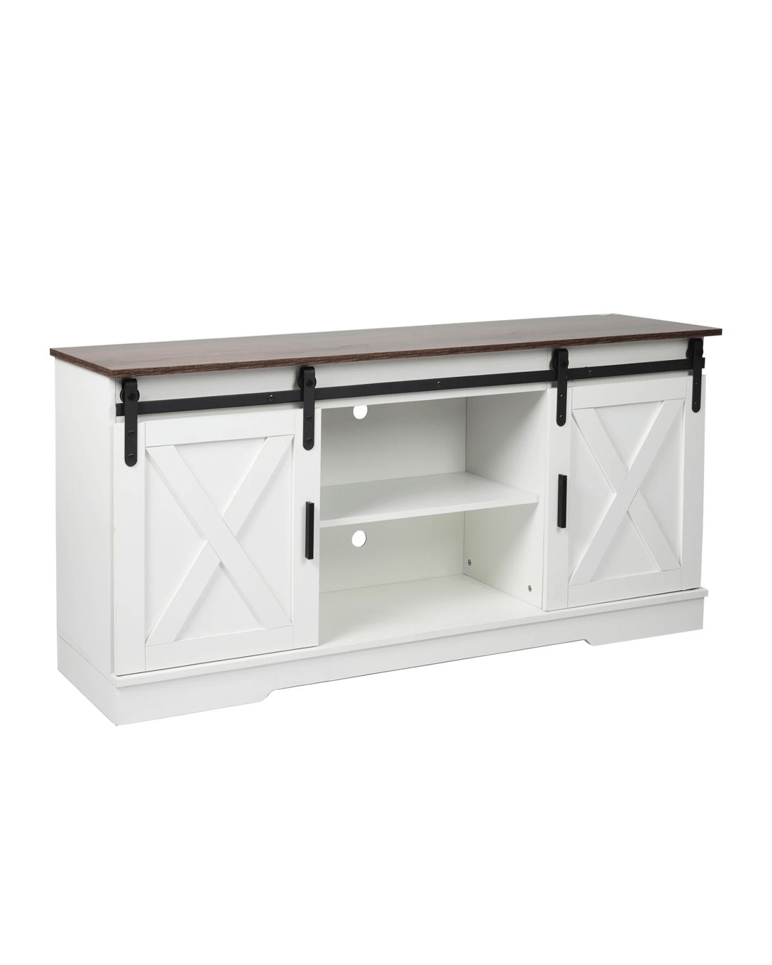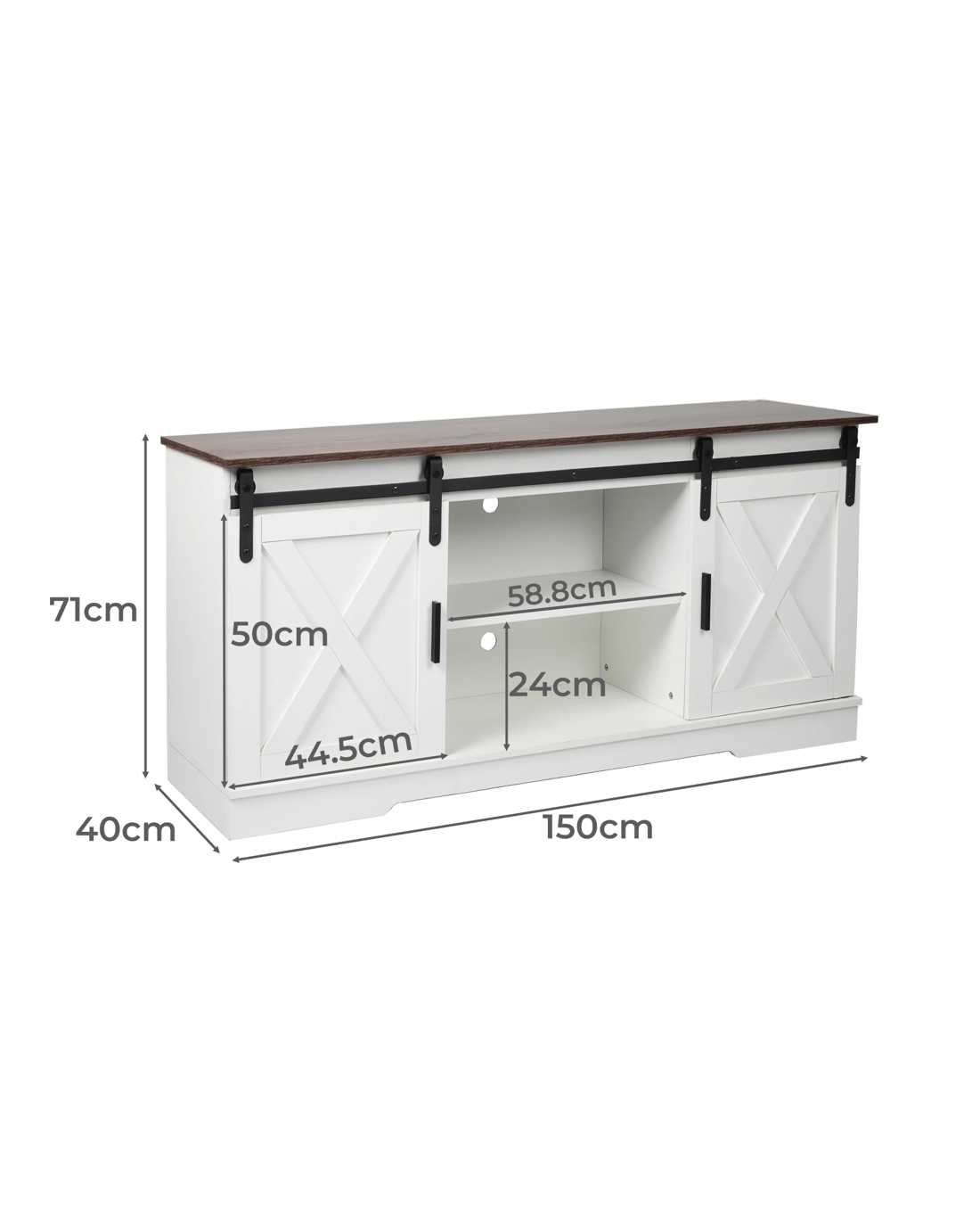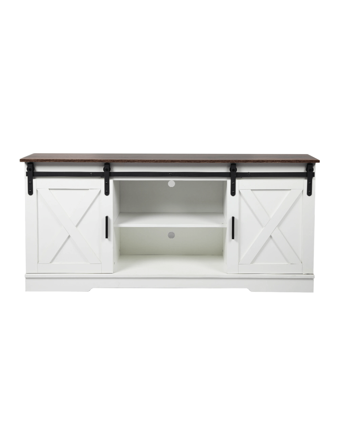 Bring farmhouse charm and functional design into your living space with the Levede TV Cabinet. This versatile piece blends rustic aesthetics with modern practicality, making it an ideal centerpiece for any lounge or media room. Featuring sliding barn doors and a sleek wooden finish, this entertainment unit offers a balance of concealed storage and open shelving—perfect for displaying décor or keeping tech essentials organized.