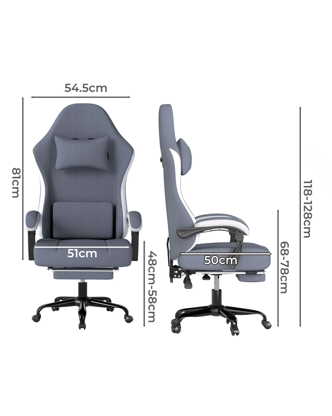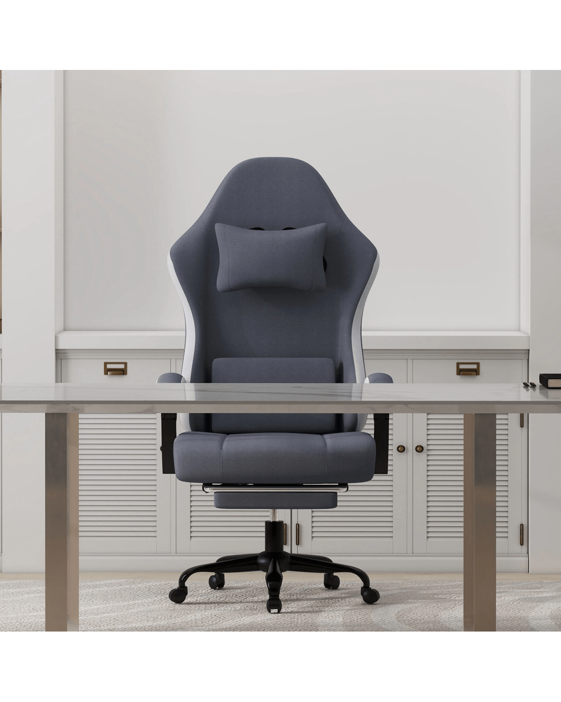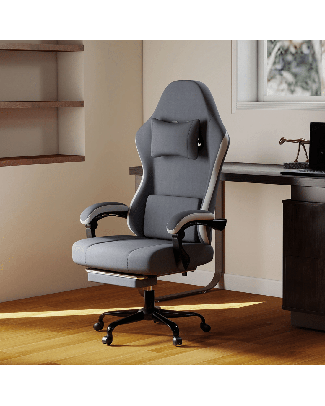 Upgrade your workspace or gaming setup with the Levede Ergonomic Chair, designed for comfort and style. This Levede high back chair features a 90°-135° reclining backrest, 360° swivel, and multi-directional silent casters, making it a perfect reclining office chair or gaming chair. The seat combines high-density foam with spring cushions for superior comfort, while the adjustable lumbar pillow, extendable footrest, and headrest enhance support during long hours of work or play.