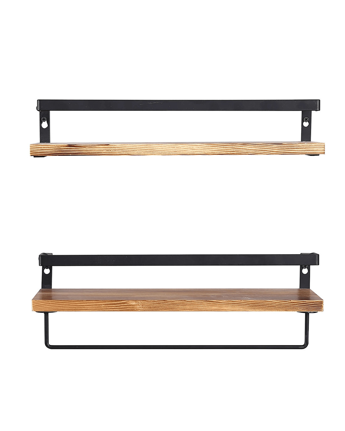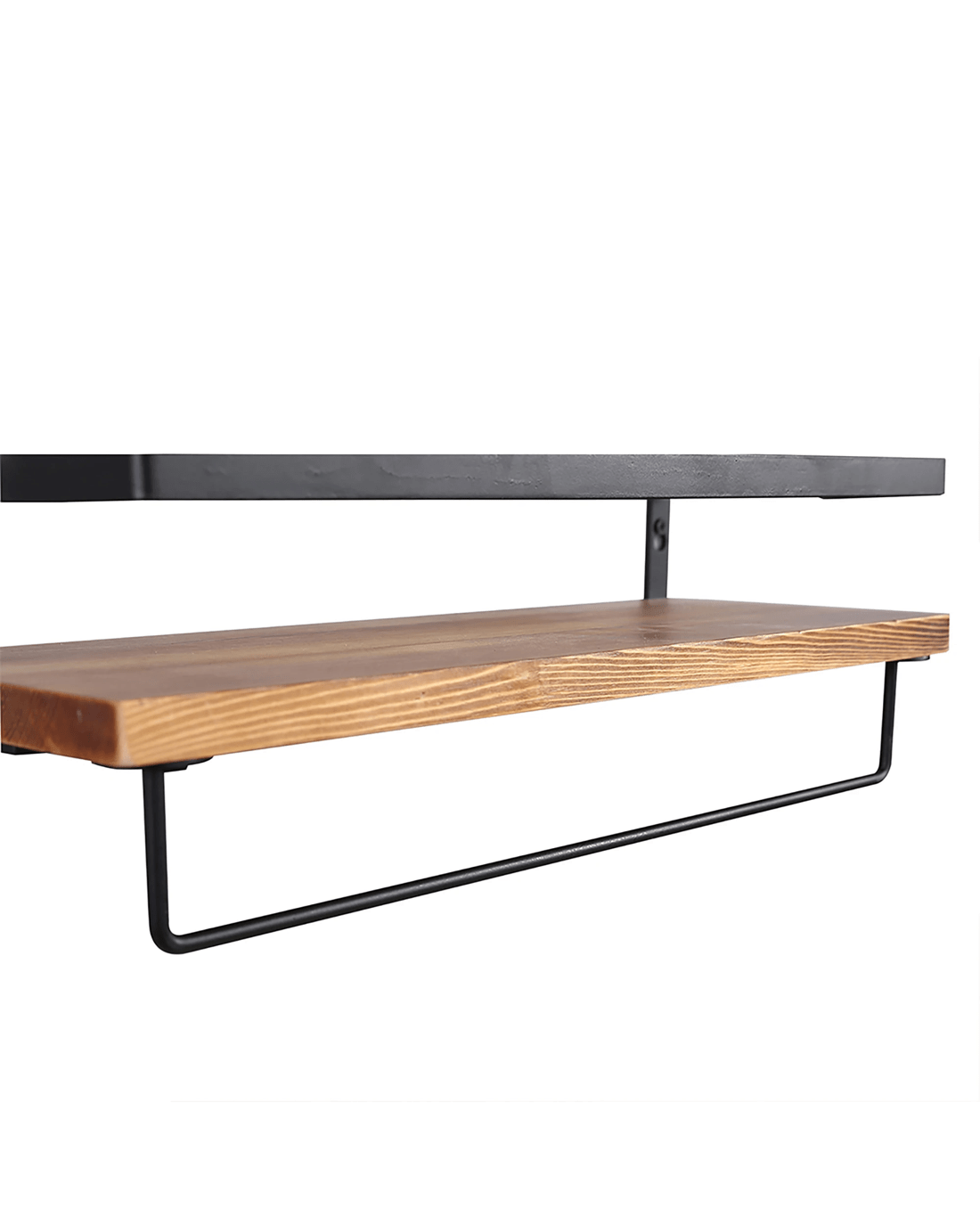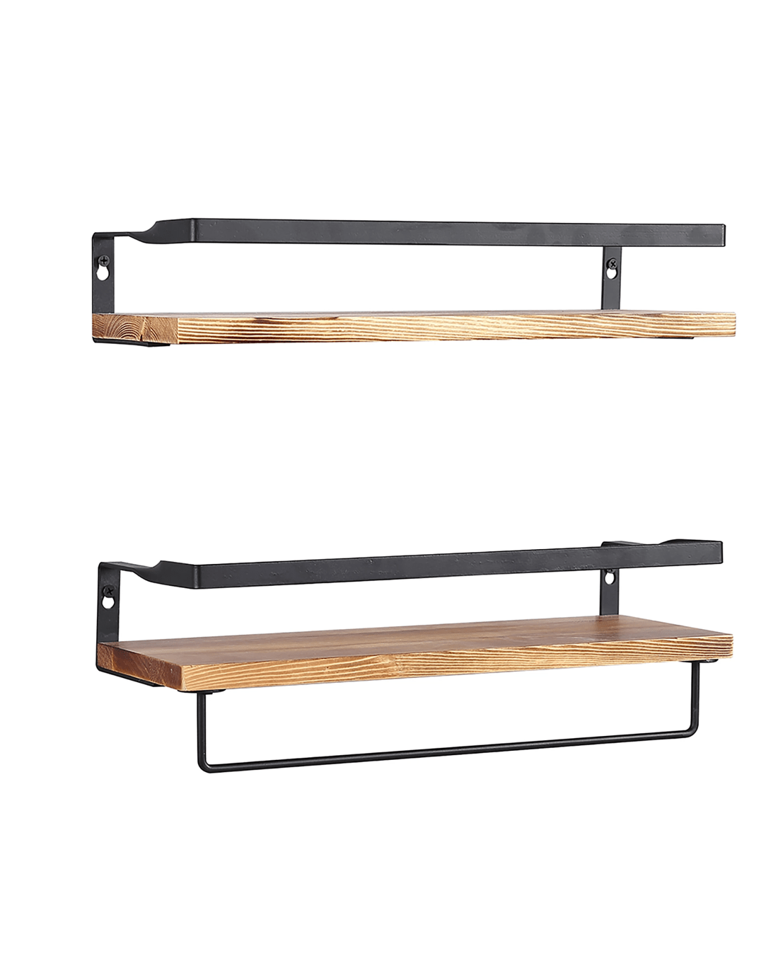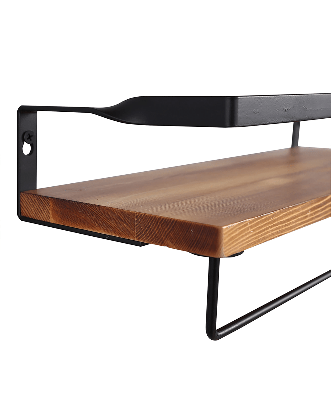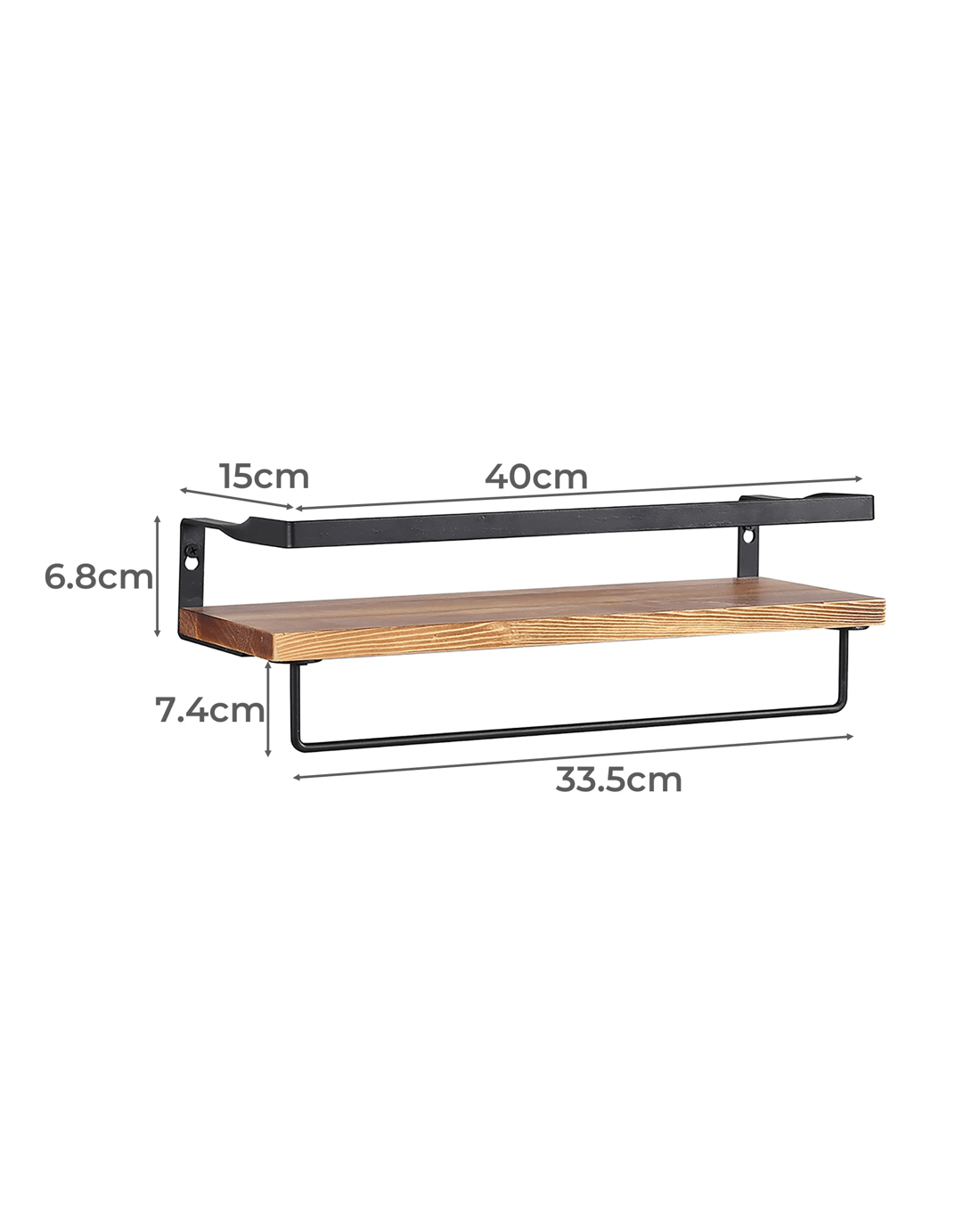 Designed for versatility, each floating shelf comes with removable hooks and a towel bar – ideal for hanging keys, mugs, coats, or utensils. The metal frame offers reliable support, while the wood shelf provides a spacious surface for your favourite books, plants, and décor.