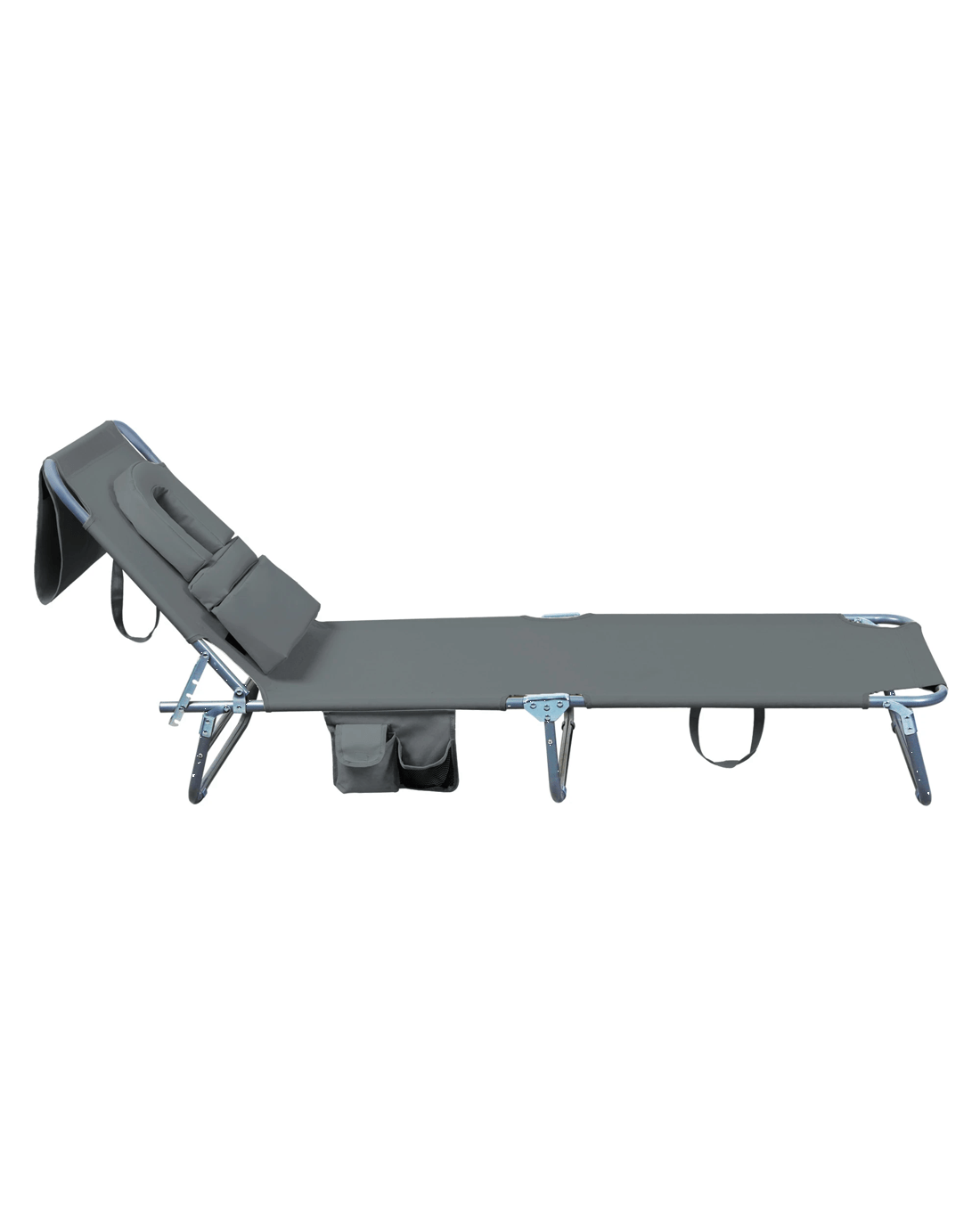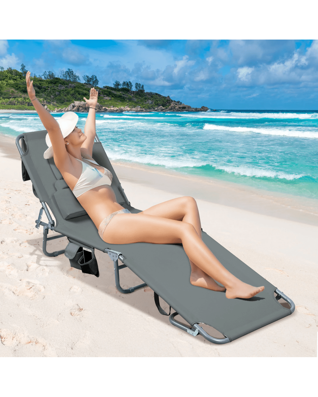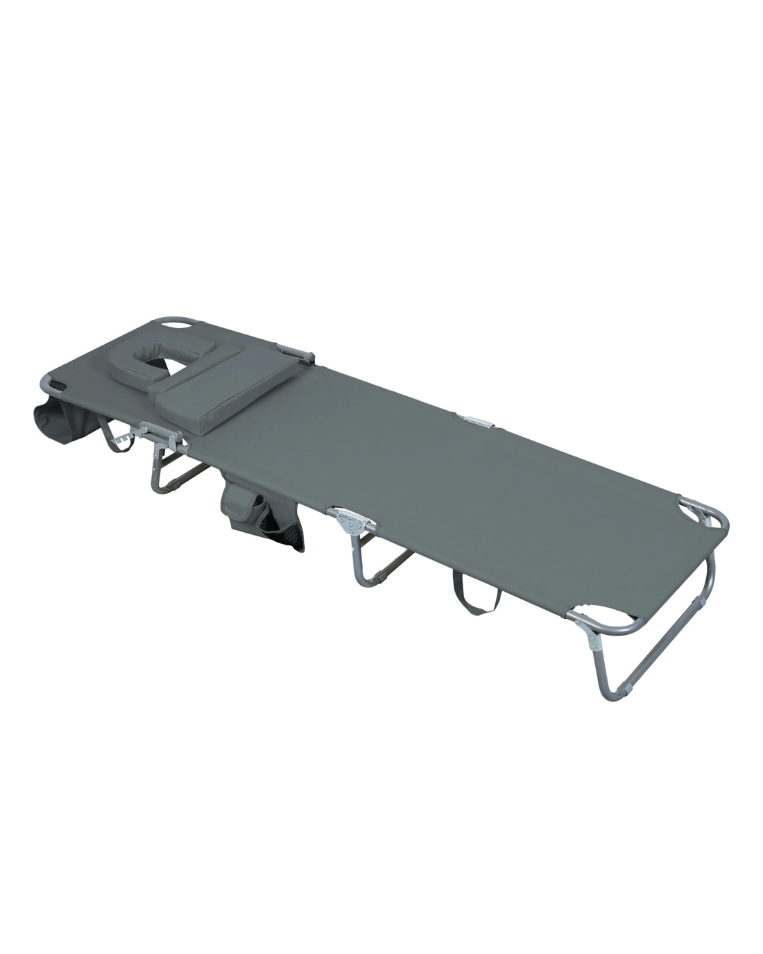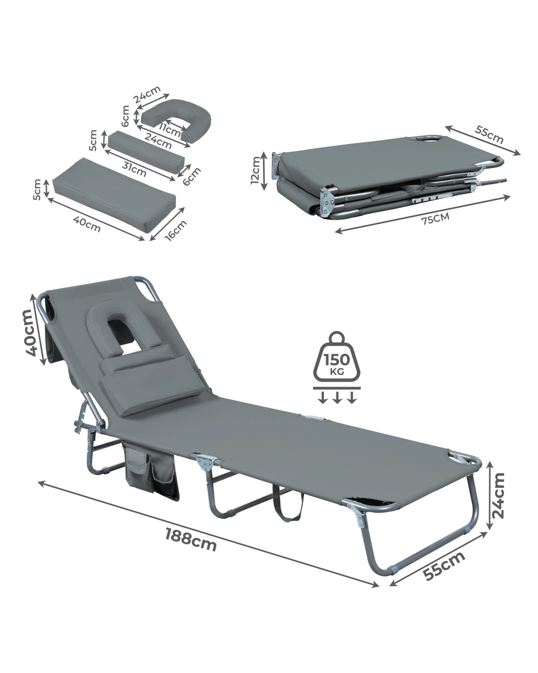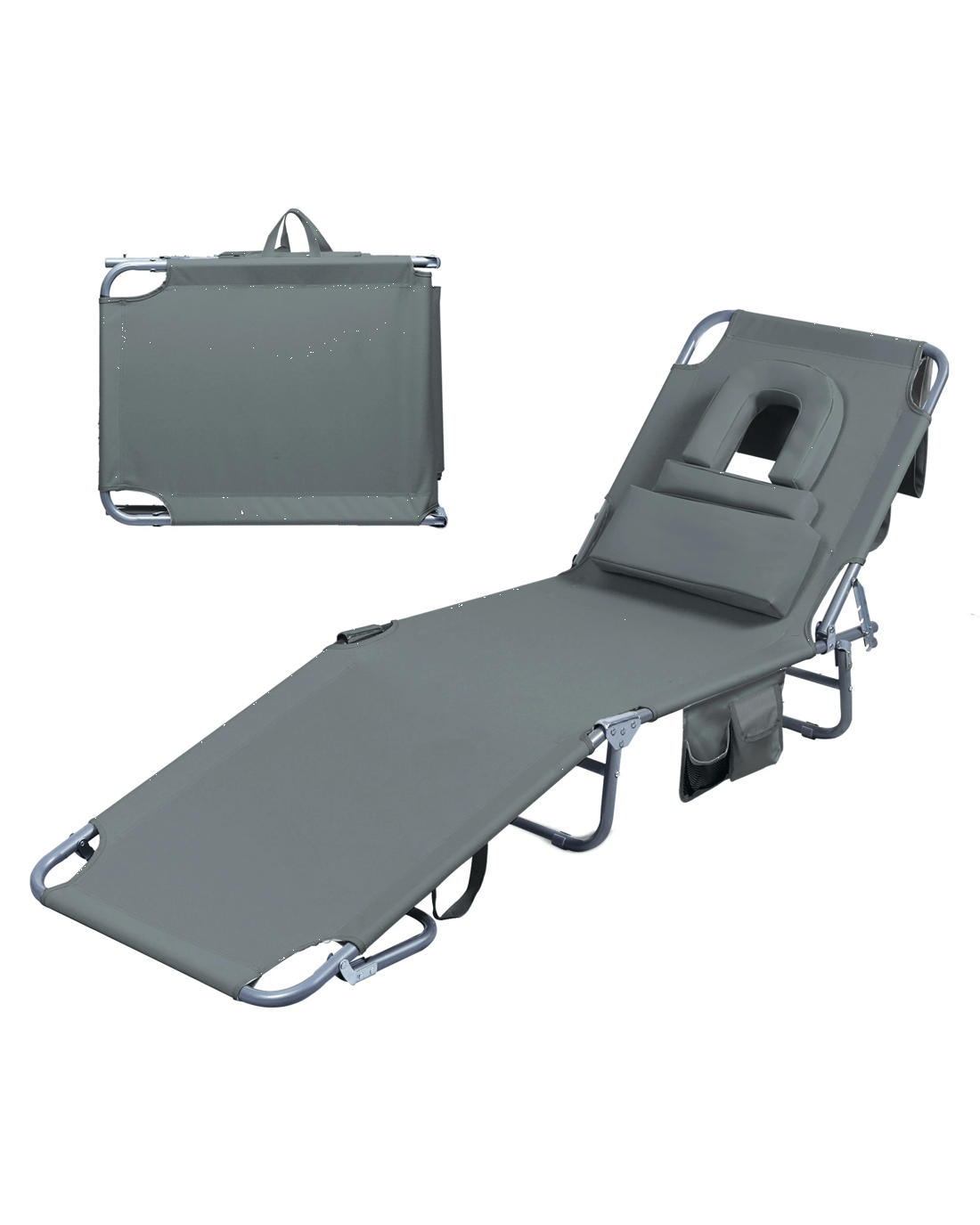 Levede Folding Beach Lounge Chair with Face Hole Sun Lounger Camping - Grey