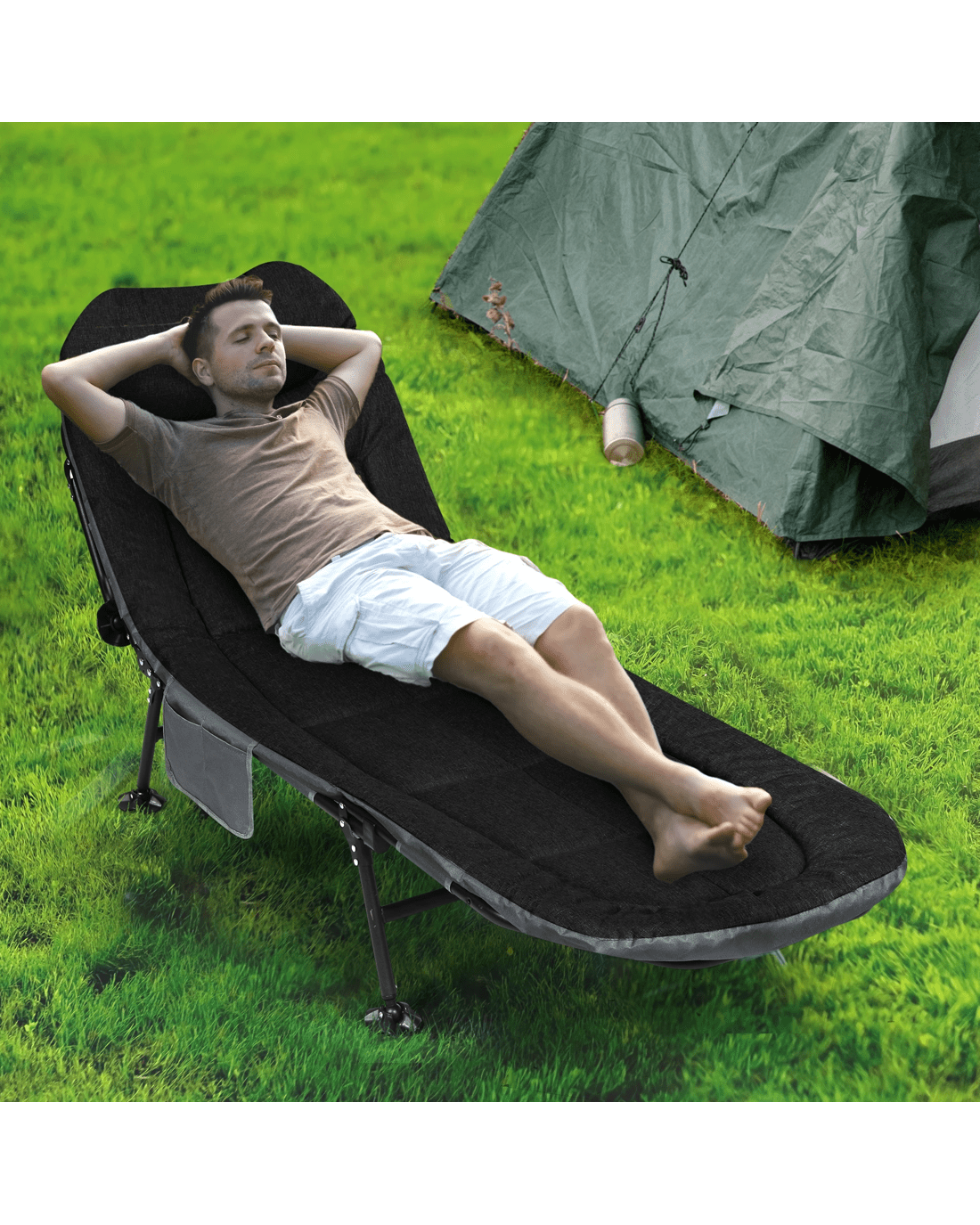 Crafted with sturdy metal frames and breathable 600D Oxford fabric, this portable cot ensures durability and comfort. Thanks to the 6-position adjustable backrest and padded surface, you can lounge, relax, or sleep just the way you like. From outdoor trips to emergency use at home, the Levede folding camping cot is built for every occasion. Get the camping gear that makes resting under the stars better than ever.