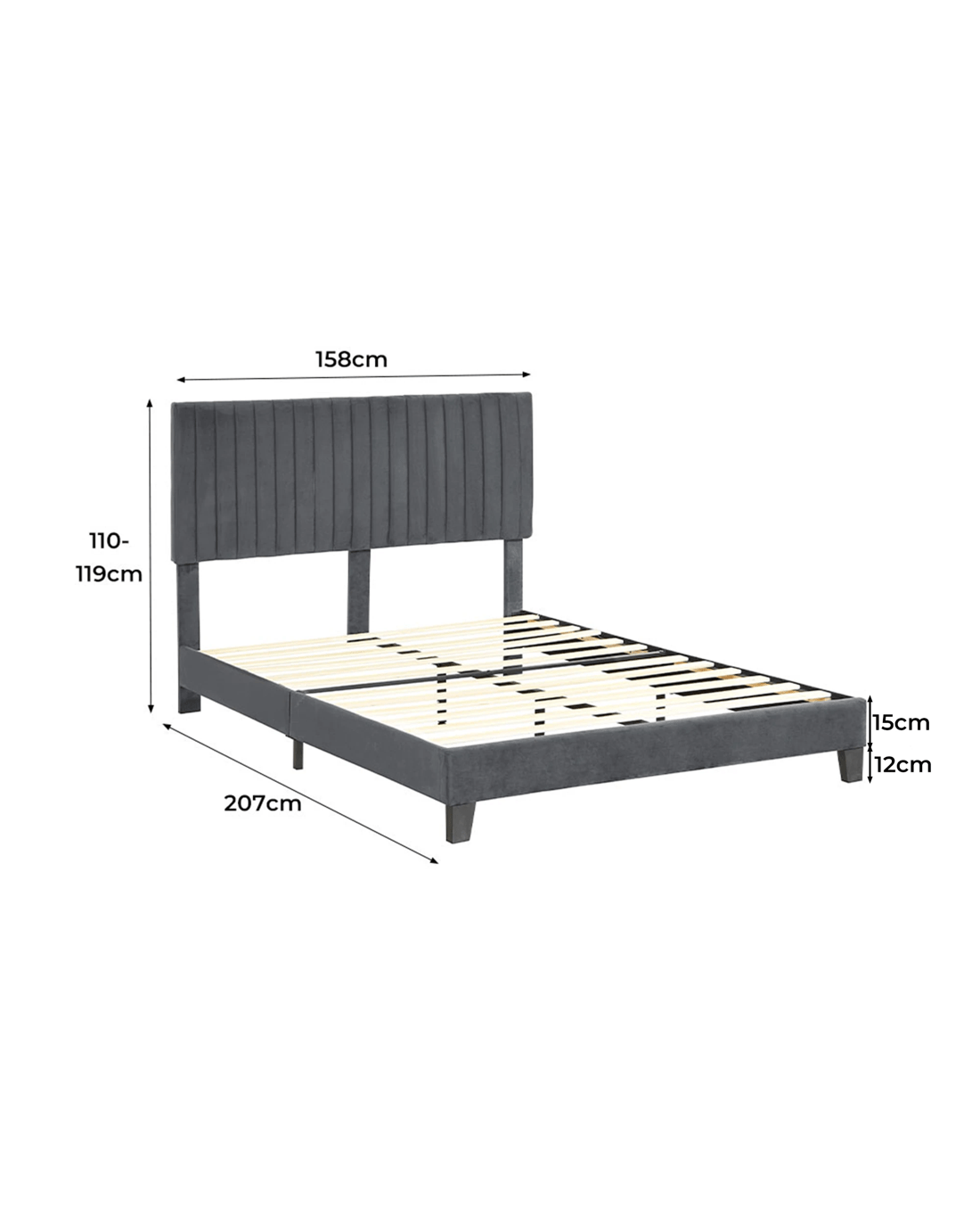 Queen: 207cm x 158cm x 110cm - 120cm