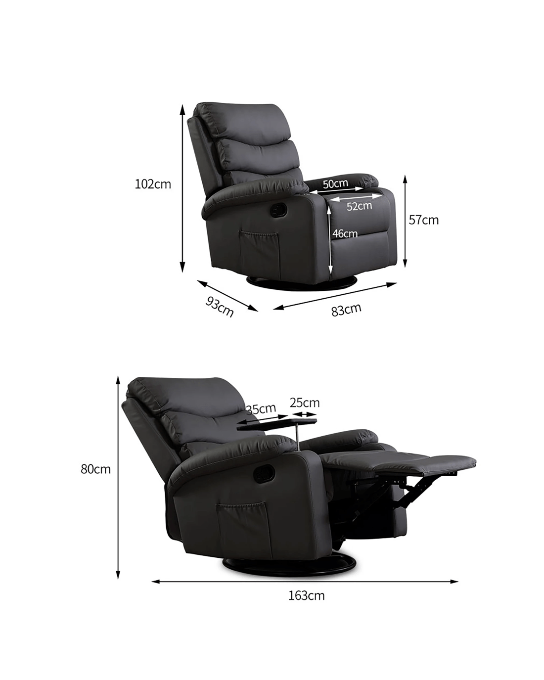 • Removable Tray: Holds snacks or drinks for added convenience.