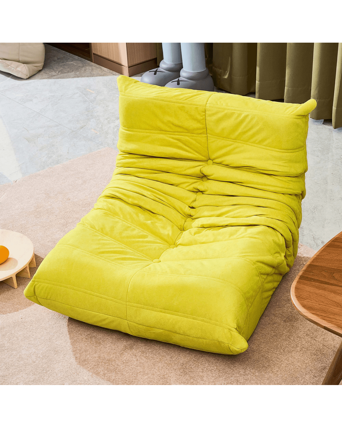 The frameless construction allows for natural body contouring, while the vibrant yellow color adds a cheerful touch to any room. Its lightweight design and practical features make it an ideal choice for family rooms, gaming corners, or children's spaces. The chair's adaptive nature ensures comfortable seating for users of all ages, making it a versatile addition to any modern home looking for flexible, comfortable seating solutions.