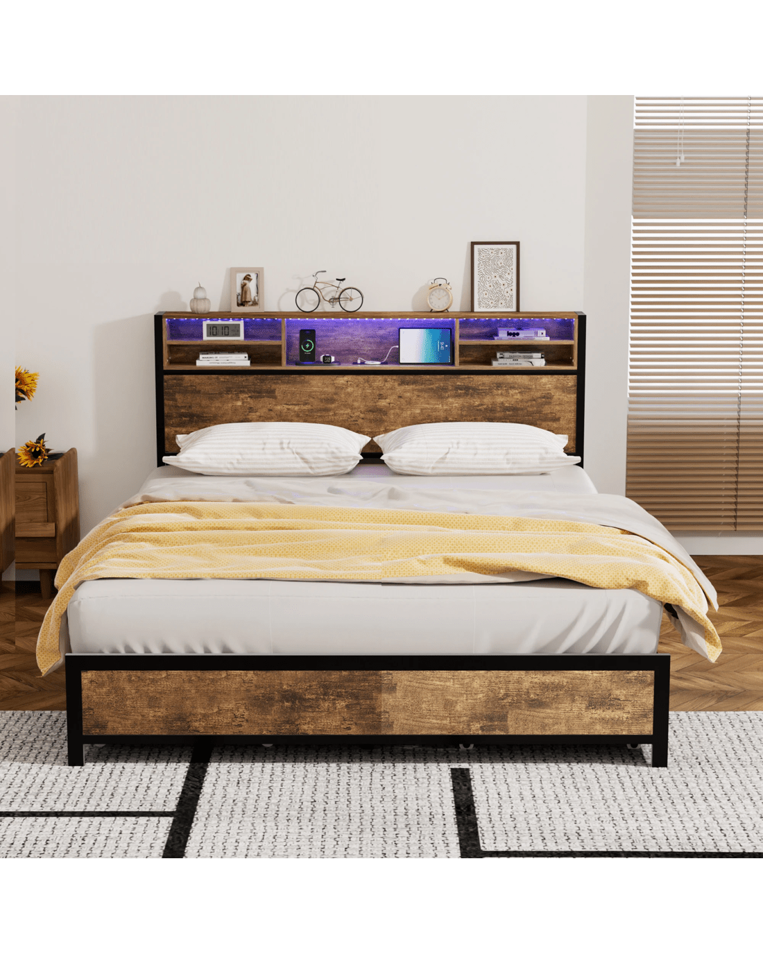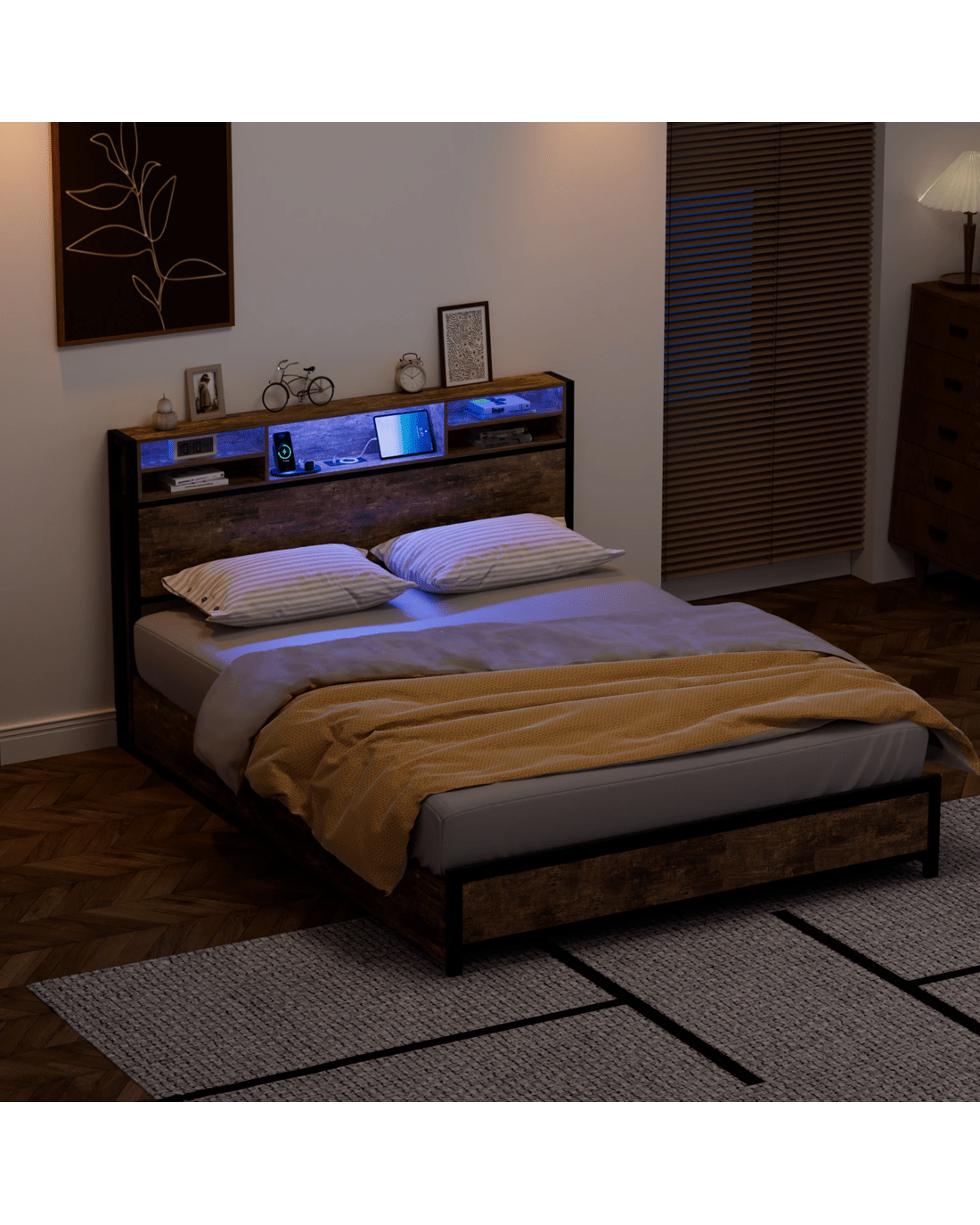 Sold by Sello ProductsLevede King Bed Frame with LED and Charging Station