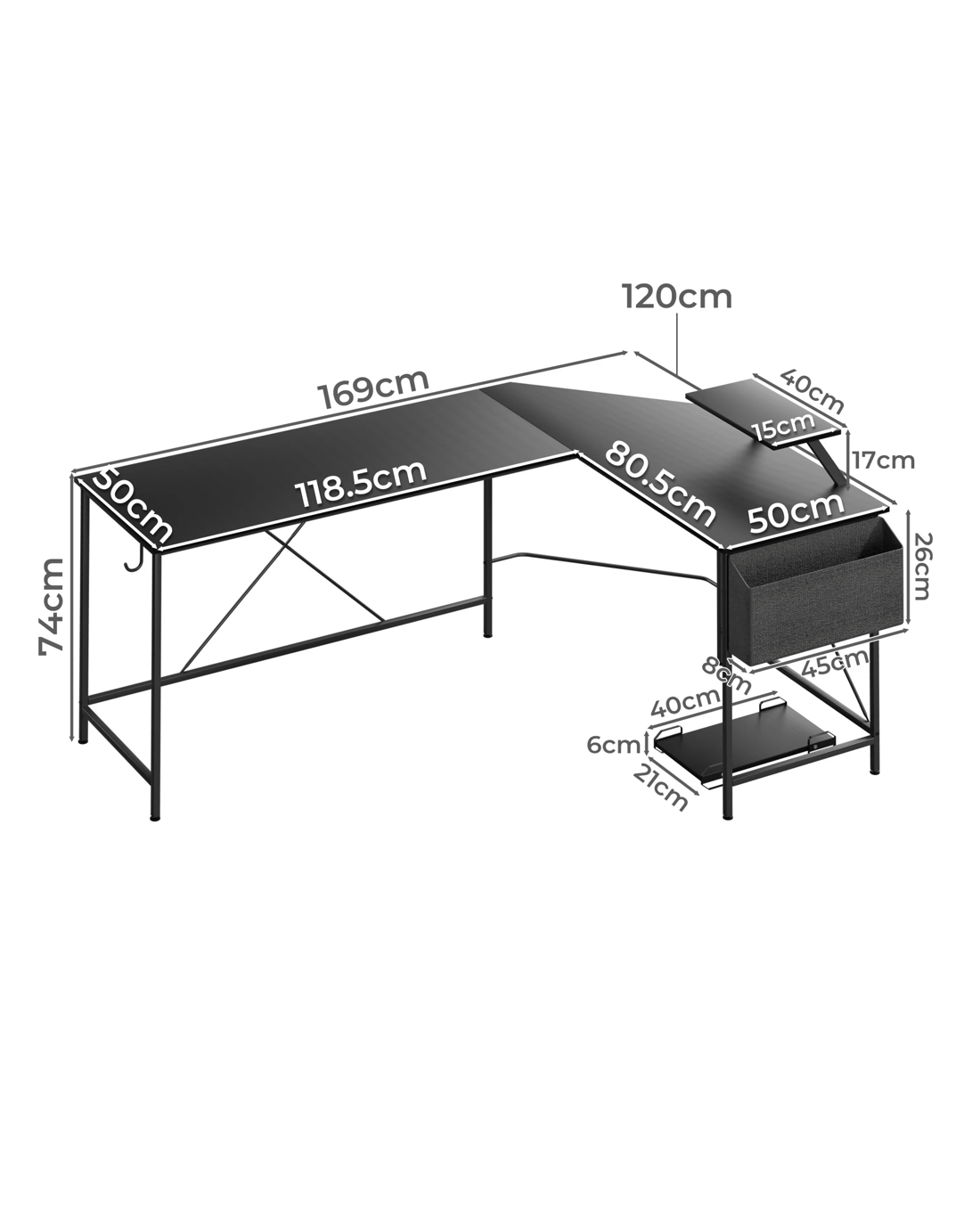 - 1 x Levede L Shaped Desk