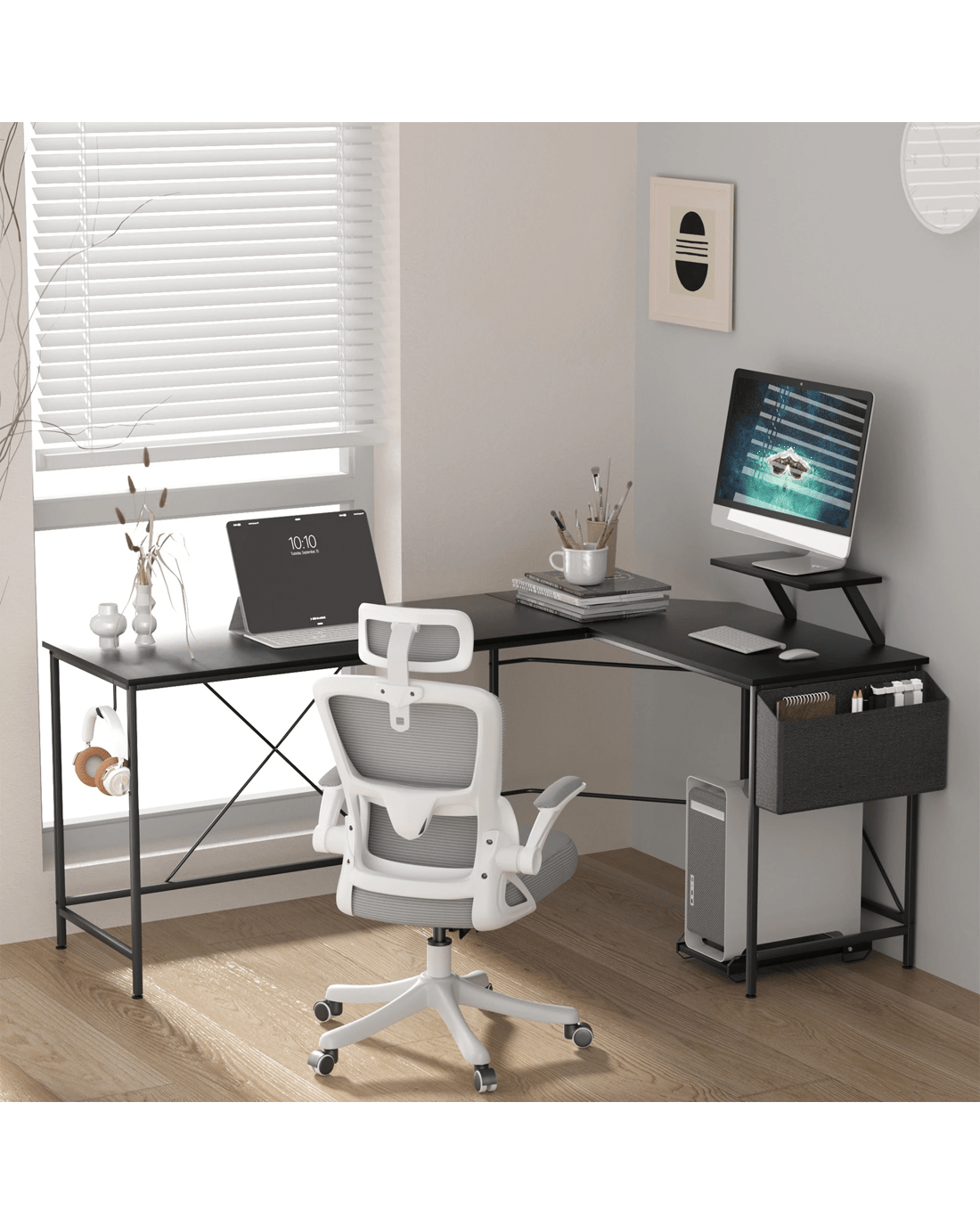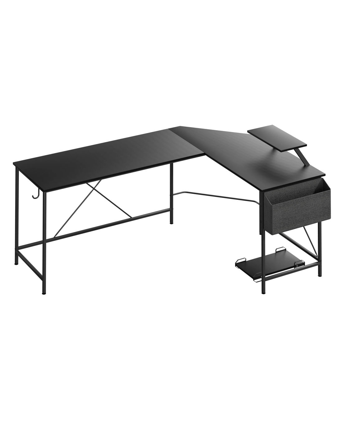 The L-shaped design of this desk provides ample workspace for all your professional tasks, whether you're working on multiple projects simultaneously or collaborating with colleagues. The spacious layout allows for efficient use of space, maximizing productivity and creativity.
