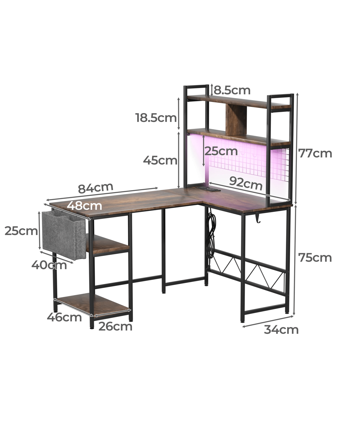 Keep your space neat with clever storage compartments, movable double-sided corners, and a quick installation system that gets your Levede office desk up and running in no time.