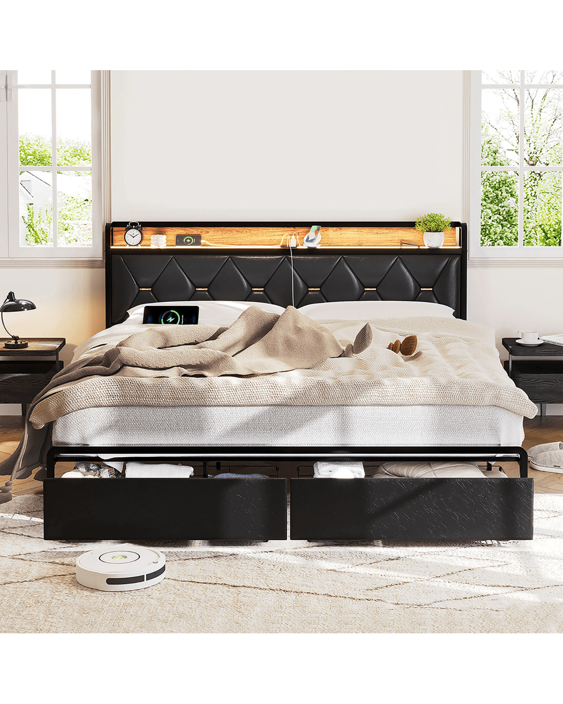 Levede Bed Frame with LED Headboard & Storage – Smart, Stylish, Sturdy