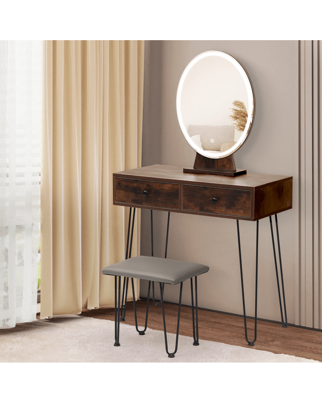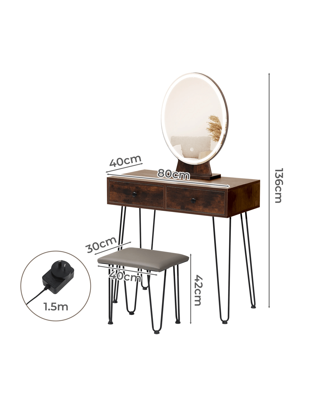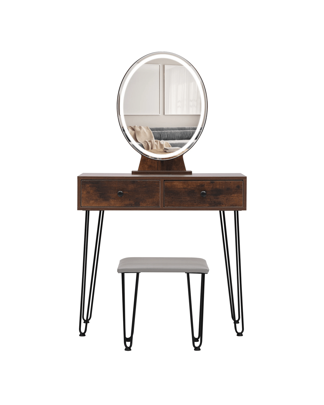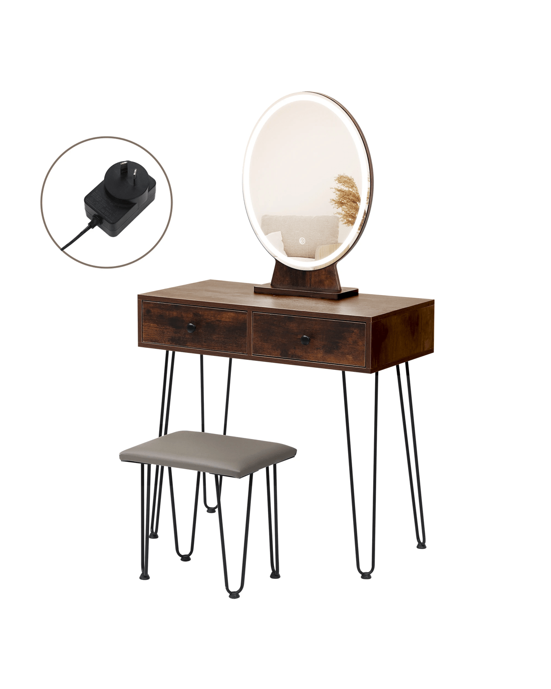 Sold by Sello ProductsLevede Led Mirror Dressing Table Set - Brown