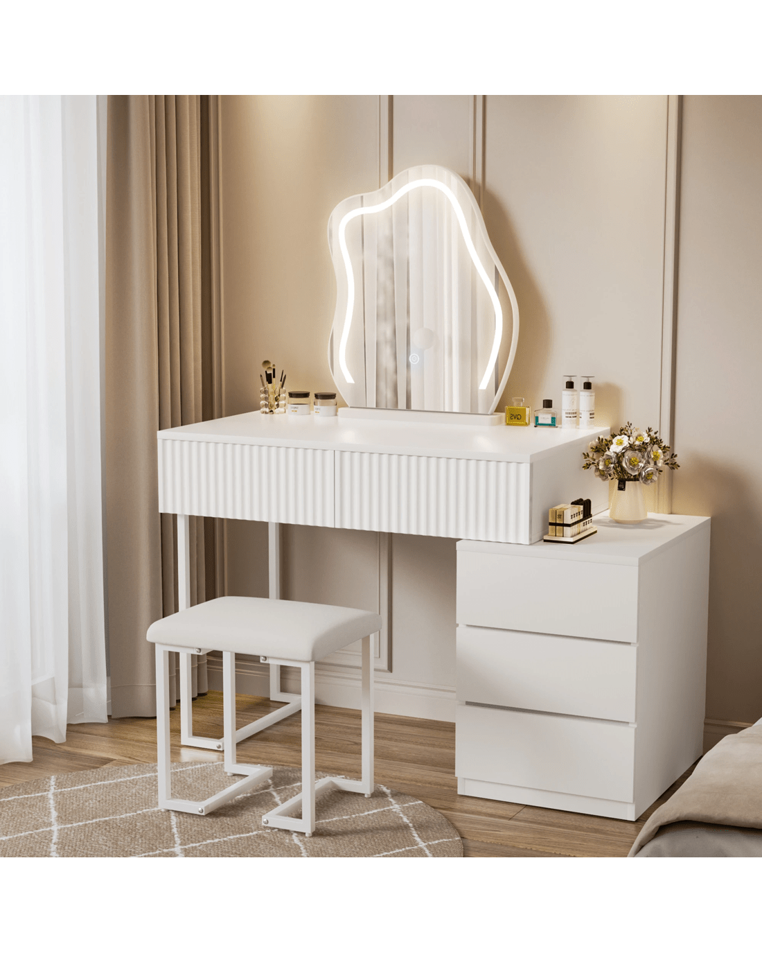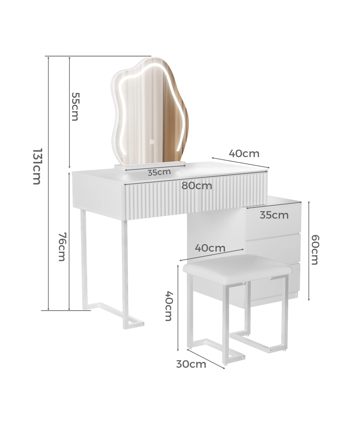 everyday practicality with this elegant Levede Dressing Table set. Whether you're getting ready for work or glamming up for a night out, this makeup vanity is your go-to space for beauty and organisation. Designed for convenience and comfort, it features a touch-control LED mirror with three lighting tones and adjustable brightness to match any mood or time of day.