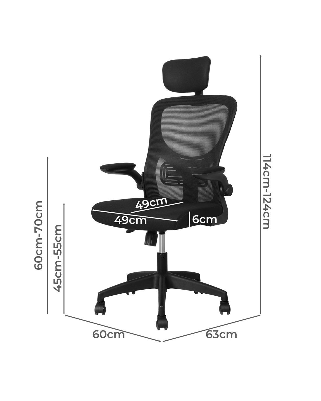 Armrest height: 60cm - 70cm