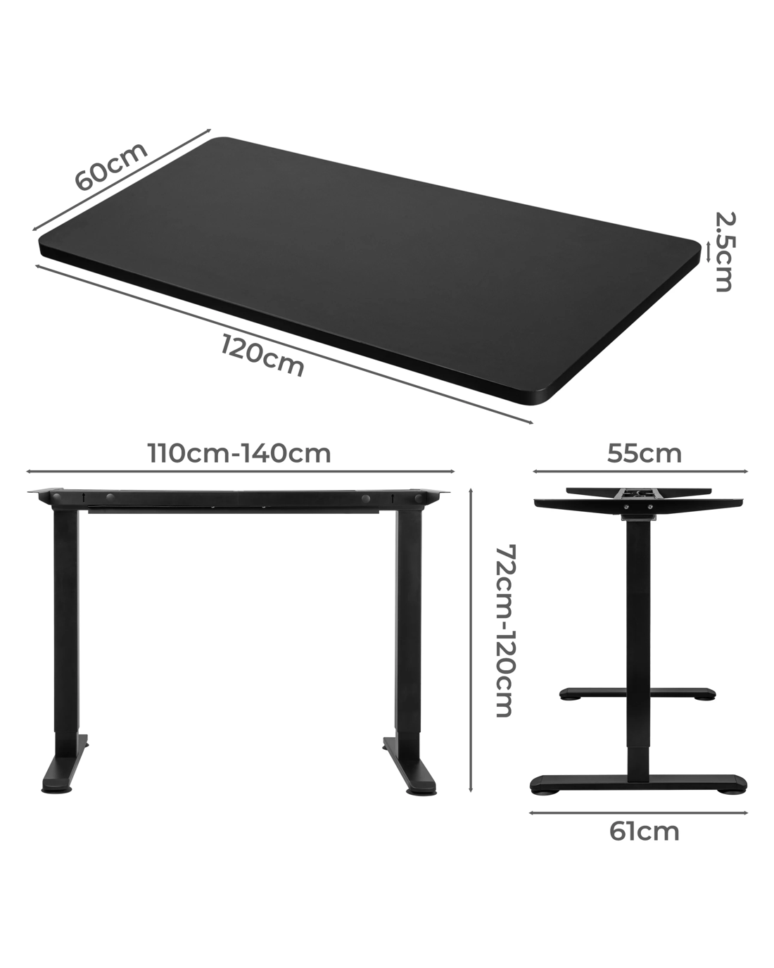 Compatible table top dimensions: 110cm to 140cm x 60cm to 80cm (W x D)