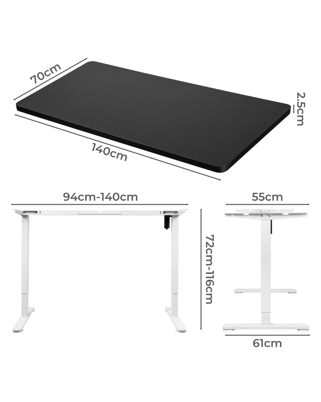 Compatible table top dimensions: 110cm to 140cm x 60cm to 80cm (W x D)