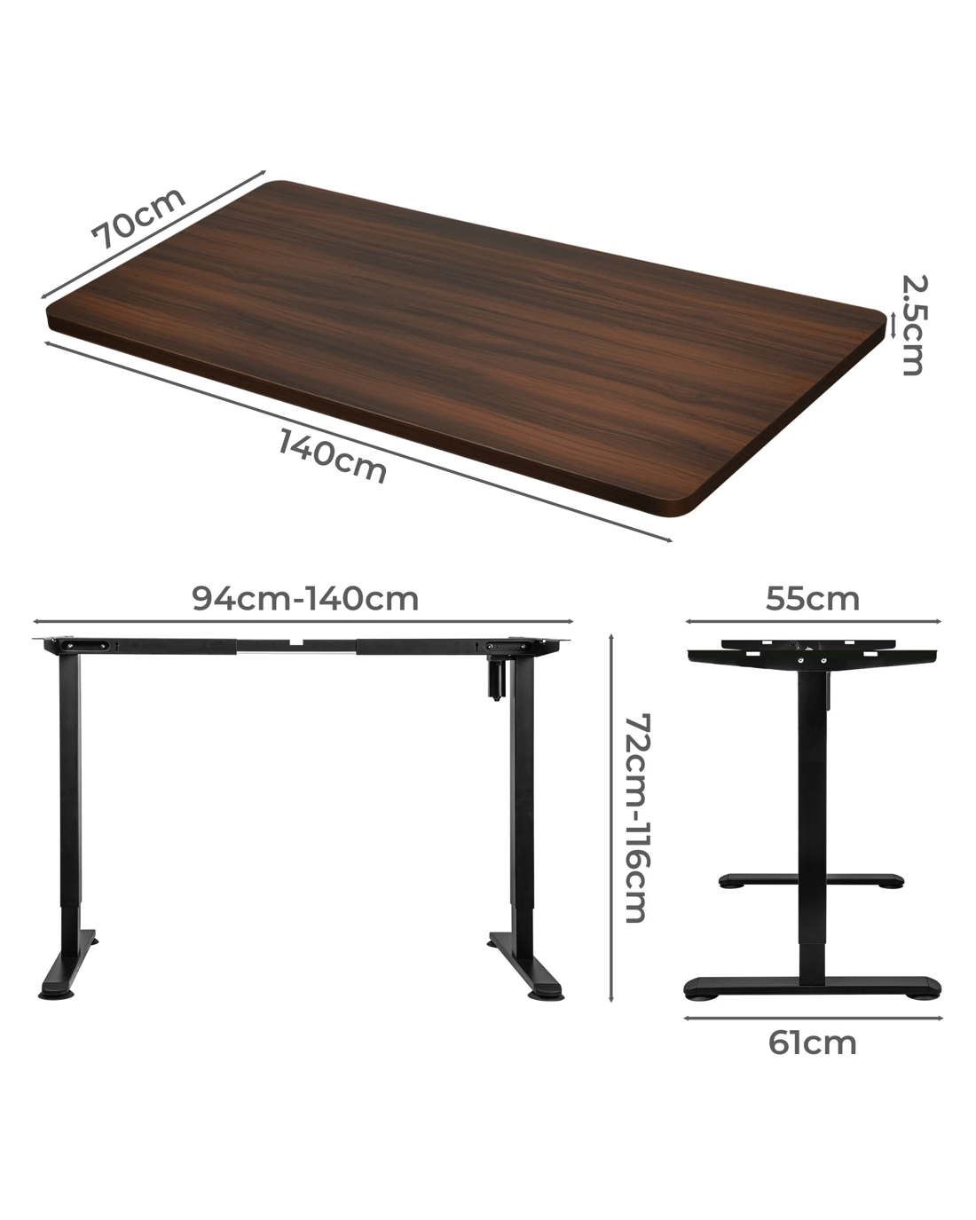 Dimensions: 110cm - 140cm x 61cm x 72cm - 116cm (W x D x H)