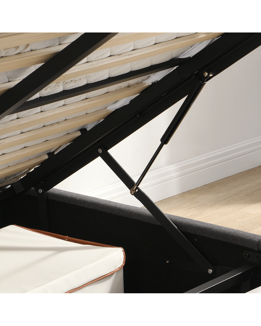 Bed Base with Gas Lift Storage: Concealed under-bed space ideal for clutter-free living.