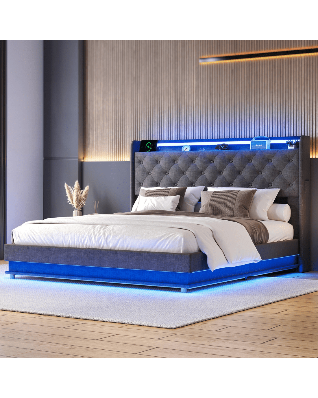 Storage Headboard with Side Pocket: Extra compartments for books, remotes, or essentials.