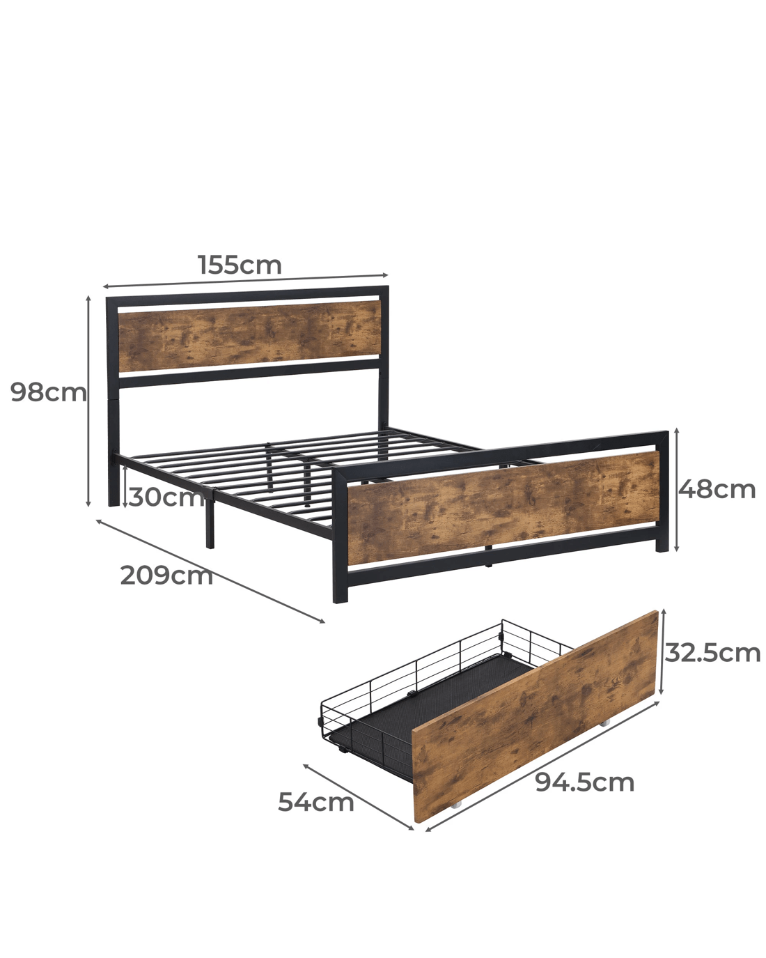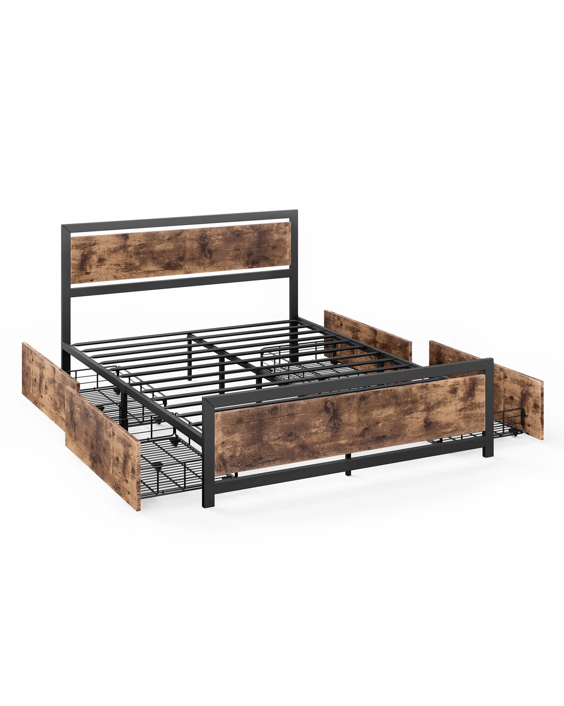 Sold by Sello ProductsLevede Queen Size Industrial Metal Bed Frame With 4 Drawers